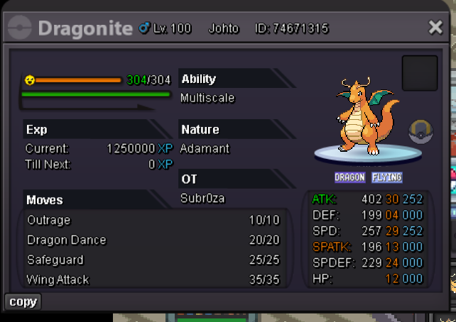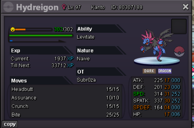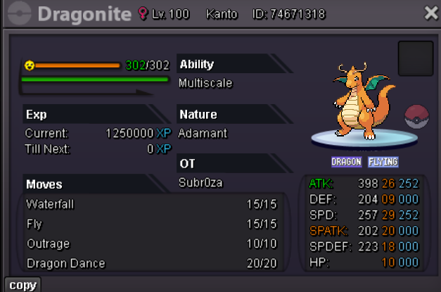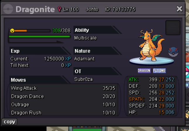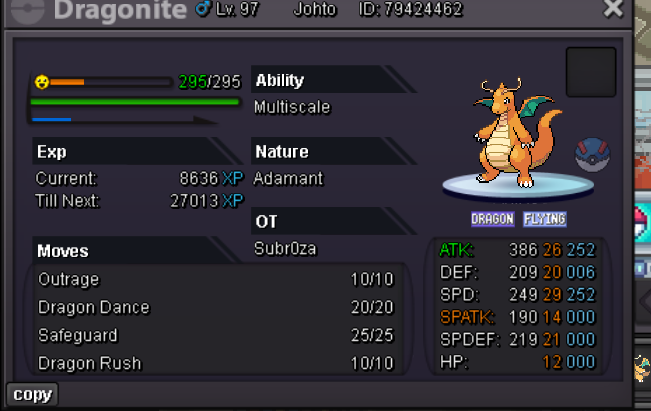 Rules: 1) Fake offers will be reported 2) Some prices are negotiable, feel free to offer. 3) You can't take back your offer. 4) Please PM us ingame or preferable on Discord for a fast response. Ingame: Uxxelmon/Subr0za Discord: fckoffimsalty/subr0za Payment Methods: Pokedollars CC = 480K Nature Reroll = 360K IV Reroll Ticket = 720K Untrained Trained Untrained-Trained-Shiny/Event