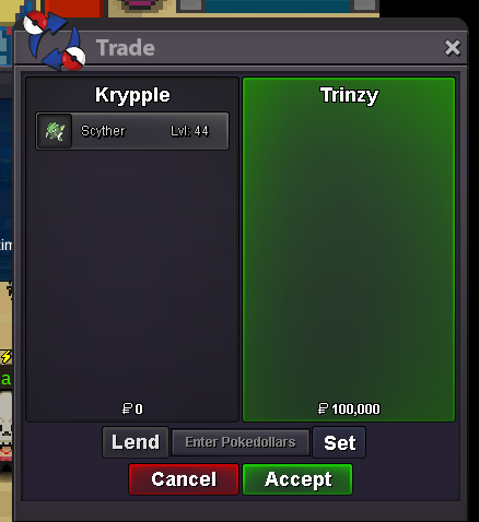 1. Auctions over @Luis30 won the porygon2 for 2.3m @Trinzy won the scyther for 100k PM me at my discord or in-game to arrange trades Discord: _gh0st12