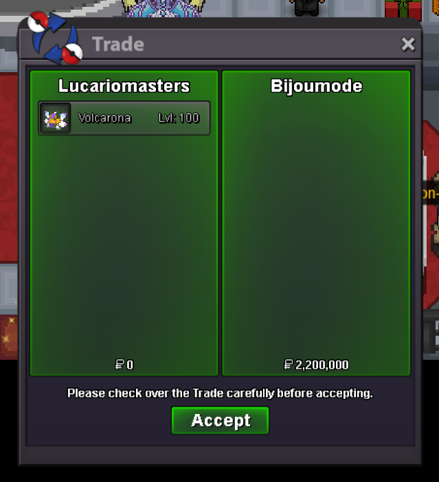 The Auction has ended. And the winner is @Aacorn! Congratulations! The price ended at 1.2m I am so sorry that i am respond late, i have had fever for the last 2 days and i´ve had trouble playing then. I live in gmt+2 so it is right now night, whenever you see me in game, you can message me, i have switched accounts now from Lucariomasters to my main: Pokesebbe09 You can also message me here or on Discord: Sebbeebbes Hope you´ve had a good day Best regards - Luca / Sebbe -