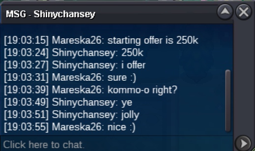 Hi guys! Welcome Starting offer : 1m NO insta minimum Bid: 250k Payments : pokedollar is a must! accepts cc(450k) rr(600k) nature(300k) Good luck guys Happy bidding!