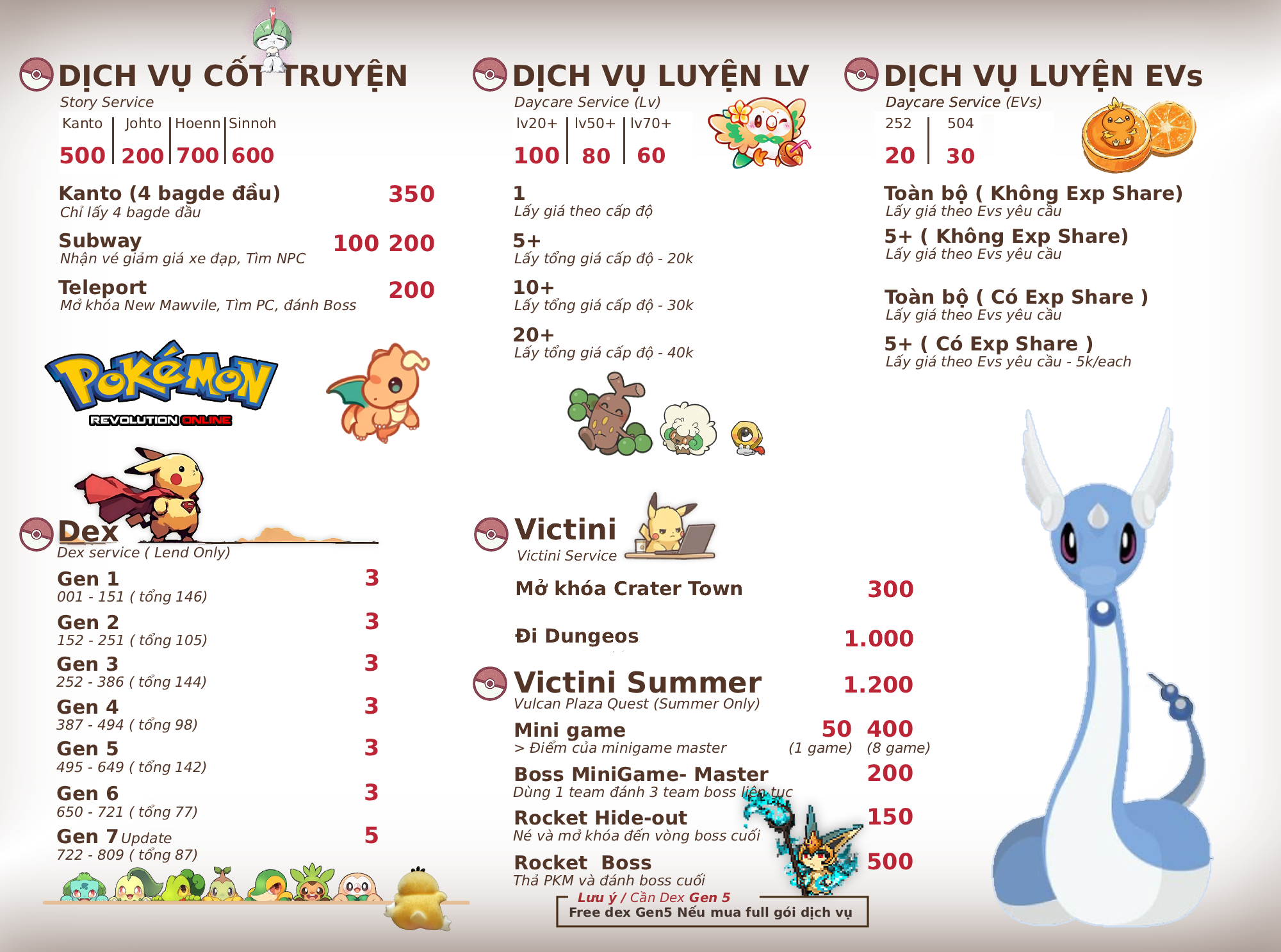 1. WELCOME TO MYZDUYEN'S SERVICE SHOP ----------------------------------------------------------------- --------------------------------------------------------------------------------------- Accepted Payments Pokedollar only Coin Capsule = 500k Reroll Ticket = 750k Rare Candy = 5k ----------------------------------------------------------------- --------------------------------------------------------------------------------------- Contact IGN: Myzduyen Discord: Kyzduyen ----------------------------------------------------------------- --------------------------------------------------------------------------------------- Shop Rules (CURRENTLY CREATING DOCUMENTATION) ----------------------------------------------------------------- --------------------------------------------------------------------------------------- STORY SERVICE (CLOSING) - (DEX SERVICE OPEN) HALLOWEEN SERVICE [OPEN]