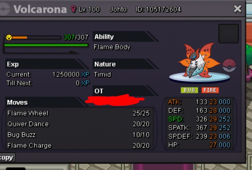 Auction] Volcarona — Timid (Flame Body) Nature: Timid Ability: Flame Body Region: Johto Level: 100 IVs: HP 27 | ATK 23 | DEF 28 | SPD 29 | SPATK 29 | SPDEF 23 Start Offer: 2m Min Raise: 300k Instant Price: 25m Duration: 48h after first bid Accepted: Pokédollars / CC = 500k Cross-ser ver: Silver + Gold