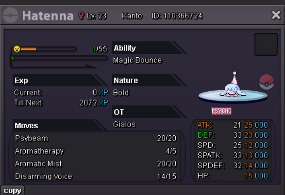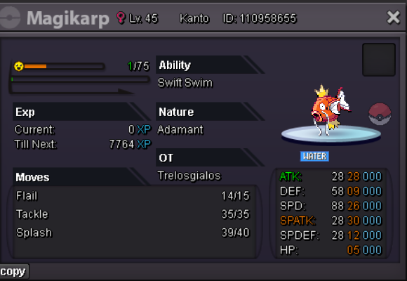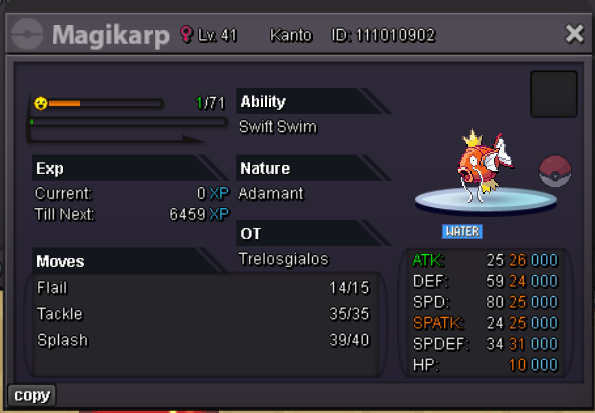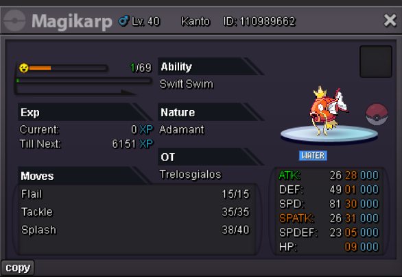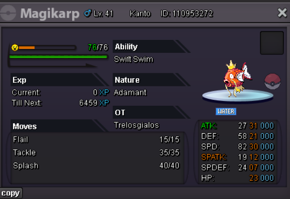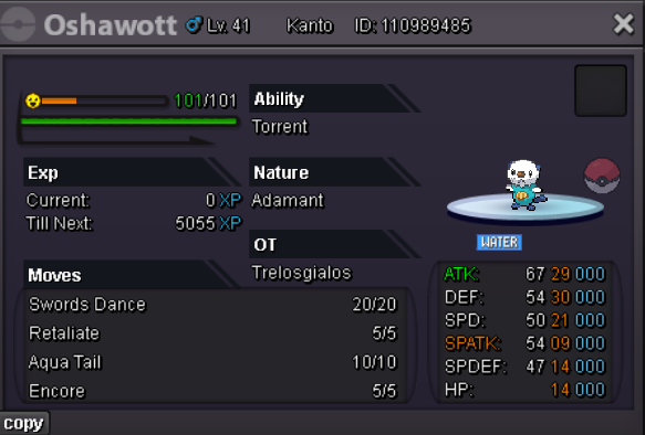 -SHOP RULES- Any fake offer will be reported. You can't cancel your offer. PAYMENT METHOD Pokedollars Reroll Ticket - 650k Nature Reroll - 320k Coin Capsule - 480k Rare Candy - 5k Discord name : Thanos3970 Ingame : Gialos Services OUTFITS-ACCESSORIES POKEMONS Magikarp Sneasel Snorunt Clefable Chansey Oshawott Totodile Scyther Squirtle Pancham Mudkip Cottonee Aerodactyl Klefki 100 lvl full train Some rare pokemons