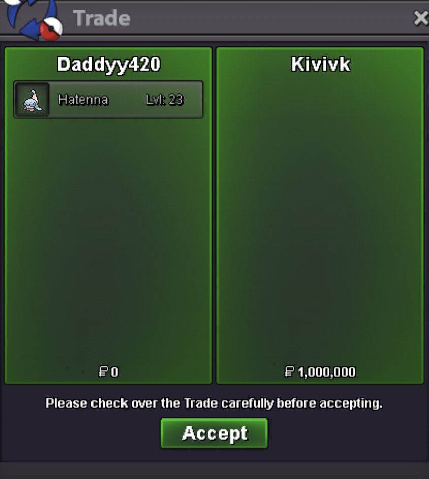 Accepted Payments: Pokedollars / 1x CC = 480K / 1x Nature RR = 300K / 1x IV RR = 700K