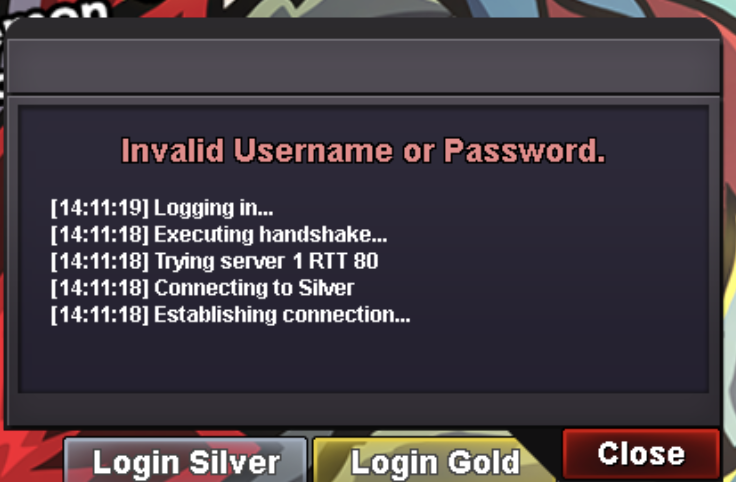 1. Hi, I recently made an account and downloaded the PRO client. I can't log in at all whether I click Login Silver or Login Gold. I've checked my username/password and they're correct (same credentials log me into my account online just fine). Each time I try to log in I get "Invalid Username or Password". Any solutions or am I doing something wrong?