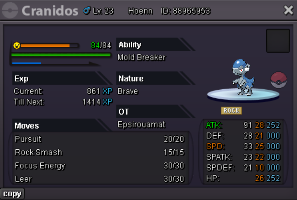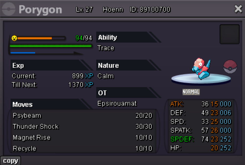 Hidden Power : Grass Start Price: 6,000,000 Minimum Raise: 250,000 Instant Price: 15,000,000 End Point: 72 hours after first bid Accepted Payments: Pokedollars Coin Capsules (500k each) Details: Shiny Petilil Ability: Chlorophyll Timid Nature 30 SpAtk Contact: In-game: Epsirouamat or forum PM Hidden power: Fighting Start Price: 20,000,000 Minimum Raise: 500,000 No instant Price. End Point: 72 hours after first bid Accepted Payments: Pokedollars Coin Capsules(500k each) Details: Vday Alolan Ninetales Hidden Ability (Snow Warning) Timid Nature 30 Speed / 30 HP Contact: In-game: Epsirouamat or forum PM