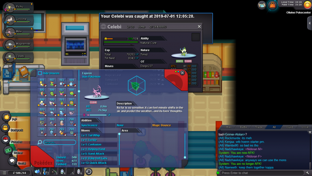 now i was looking at the pokedex for see what i need to evolve and what pokemon i havent got, and i see havent got the caught of espeon, but i remember i got espeon by lend for the quest of celebi.