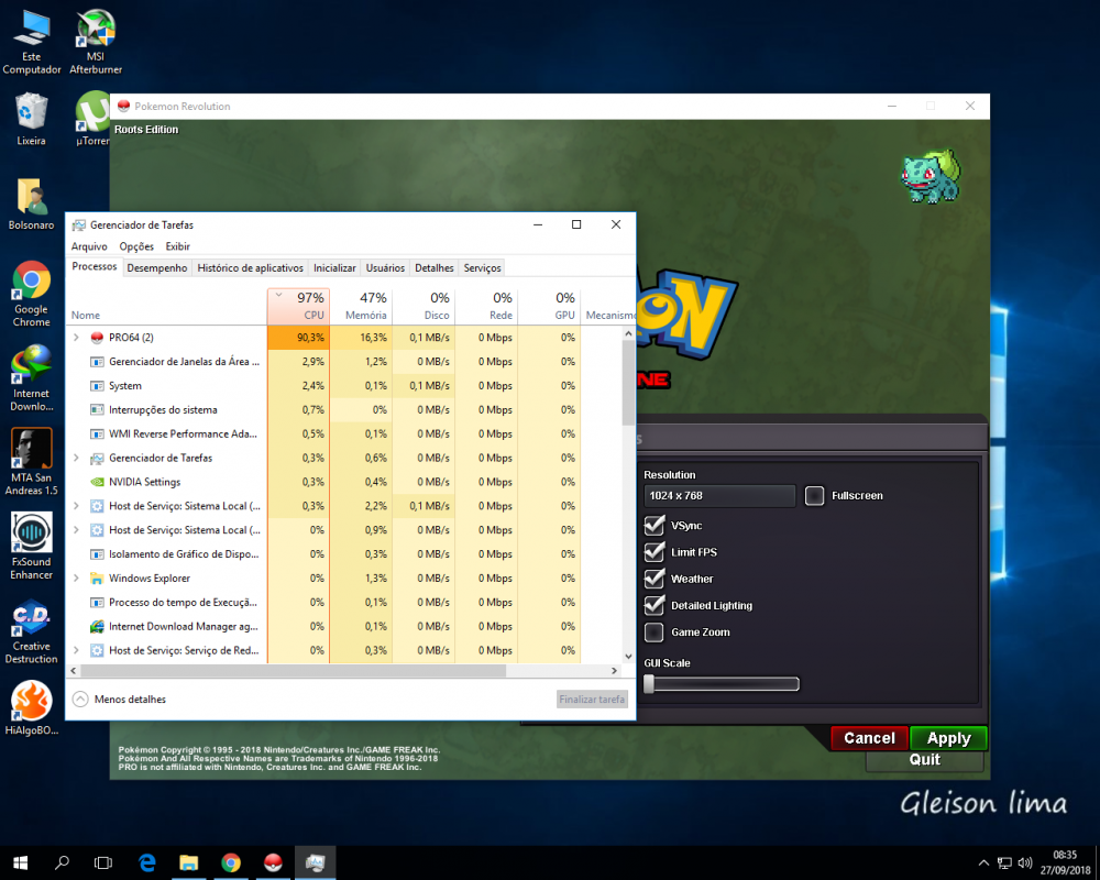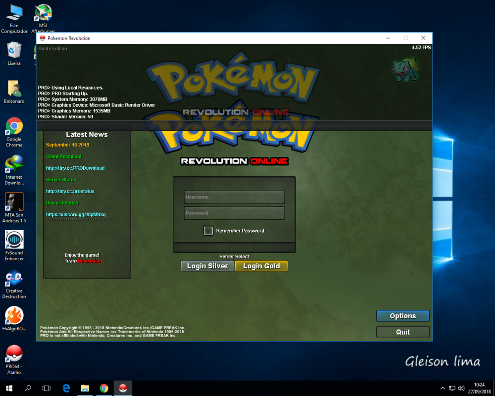 Realmente deve ser por causa da atualização do windows 7 por que eu instalei o windows 7 lite 3.0 que vem com a versao mais recente do windows o jogo ja funcionou de boa mais o pc tava usando 100 de cpu n consegui arruma e voltei pro windows 7 normal sem jogar poke revolution :(