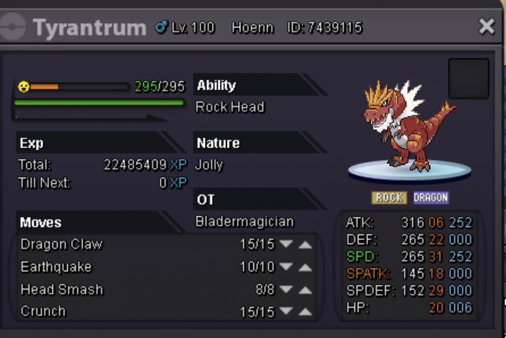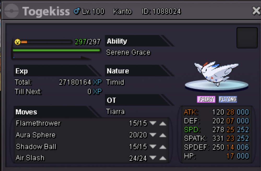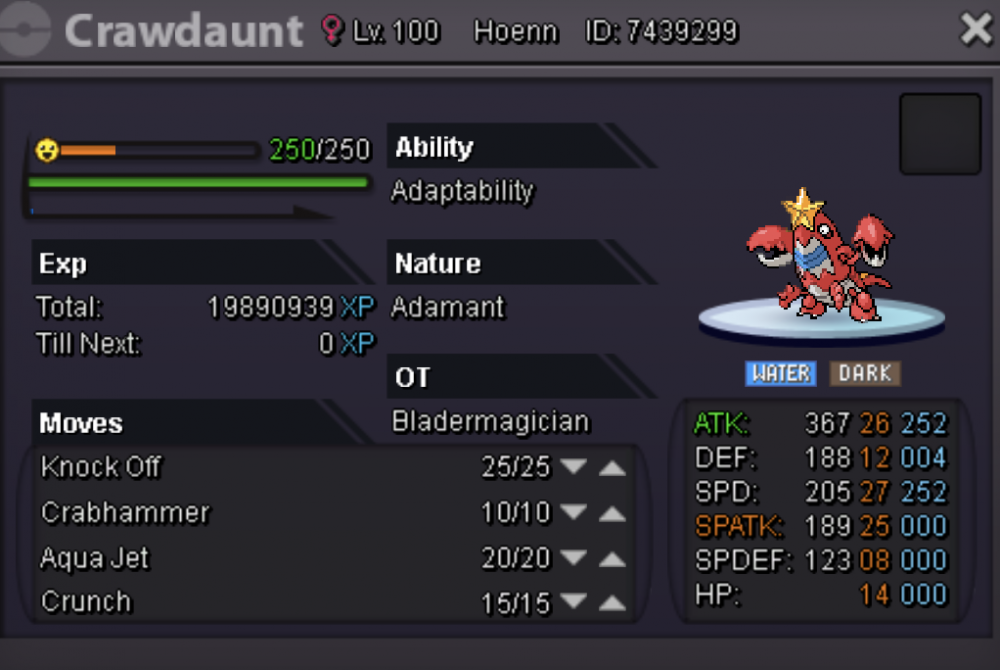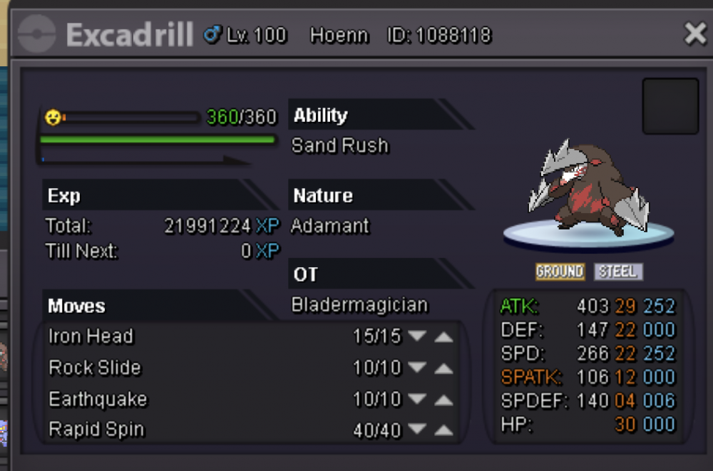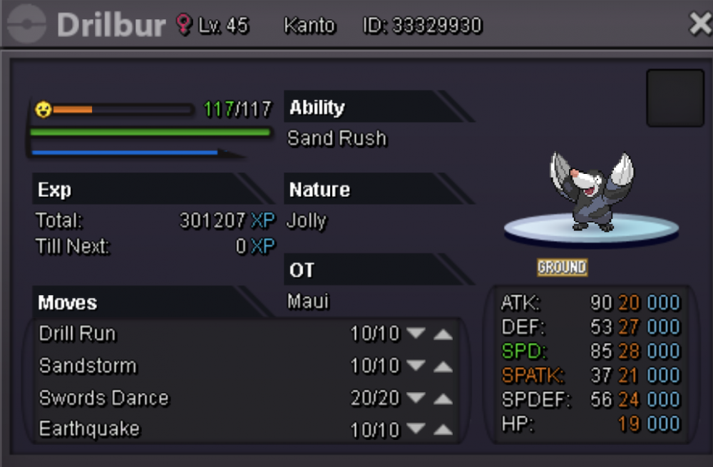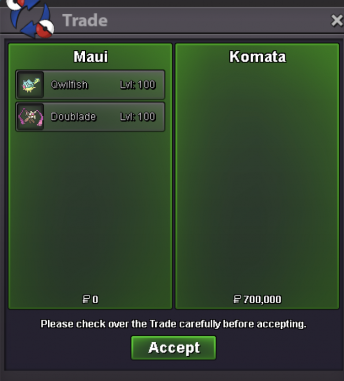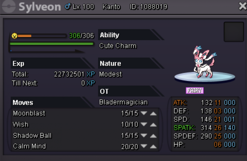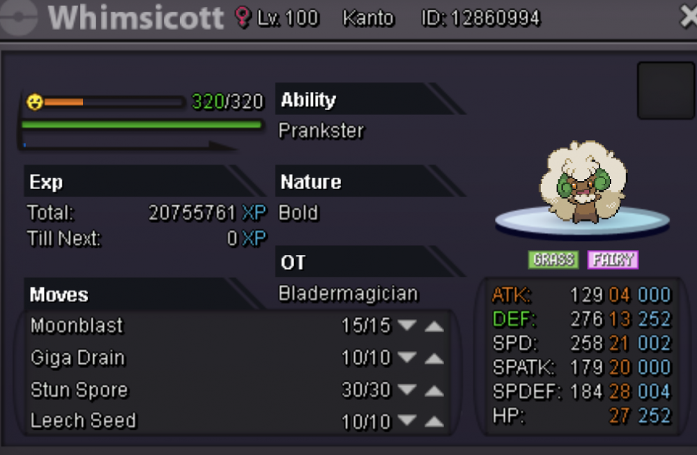 9. HEY CUTIE WELCOME TO MY SHOP [spoiler=My Discord Information]My Discord is djburke47#3882. [spoiler=Rules-READ FIRST] [spoiler=Rules-READ FIRST] [spoiler=Rules-READ FIRST] All prices are negotiable. All listings are in alphabetical order!!!!!!!!! I take reroll tickets as 550k and nature reroll as 275k. I take Coin capsules as 250k and BMS as 140k. I take RC as 5k and focus sash as 1k each. Please be respectful, I will trade for other pokes but I am not looking for them. I prefer money. I used to be staff and will make sure if you fake bid you will get banned. Stay Respectful. All the pokemon thumbnails have prices in their name. Hover mouse over the picture to see the price. I have the right to deny an offer, stop a trade or ban a player from shopping here with no notice. Trade is not locked in until it actually happens. If another user meets me before you, they get the pokemon. Customer must travel to me to pick up pokemon. No pokemon will come with item and they will be sold as is. In your offer please post a screen shot of what pokemon it is exactly or include distinct feature like 3 iv values I am in school, I will try my best to keep up but stay patient. POST BOTH HERE AND IN DISCORD IF YOU ARE GOING TO PM ME THERE. Shinies and event mons can be found here ----> Shinies and Event Mons CHAOS MEMBERS ONLY DISCOUNT ----> 100k off for every 600k spent in form of a credit (If you spend 600 you can get a free mon less than 100k, 1.2m get a free 200k mon, 1.8 mil 300k mon, 2.4m 400k mon) Enjoy! [spoiler=Pokemon For Sale][spoiler=A-C] [spoiler=D-F] [spoiler=G-I] [spoiler=J-L] [spoiler=M-O] [spoiler=P-S] [spoiler=T-V] [spoiler=W-Z] [spoiler=Sold Pokemon] [spoiler=My WIshlist] Charmander-Timid/Jolly Sableye-Impish/Careful HA Mudkip-Adament Medicham-Jolly Pure Power Ferrothorn-Sassy Excadrill-Jolly HA Garchomp-Jolly/Naive HA
