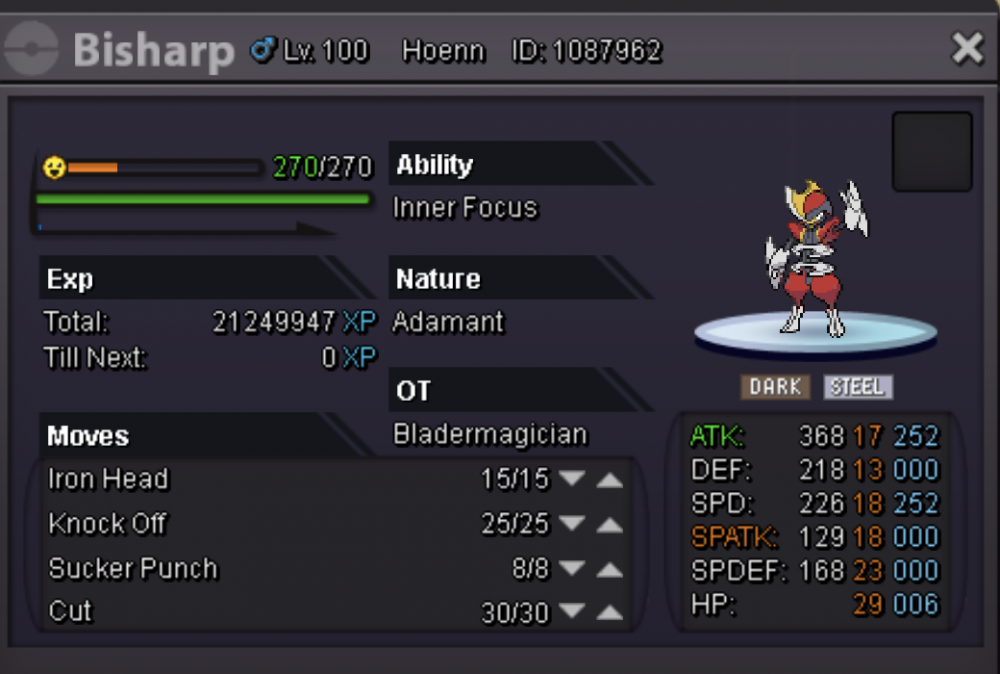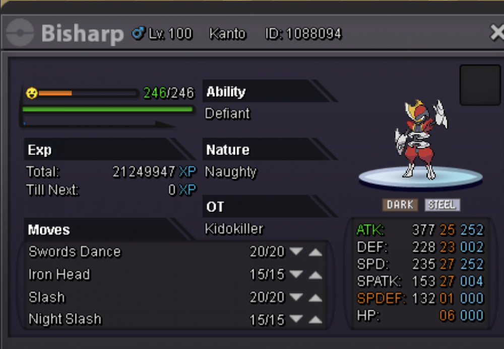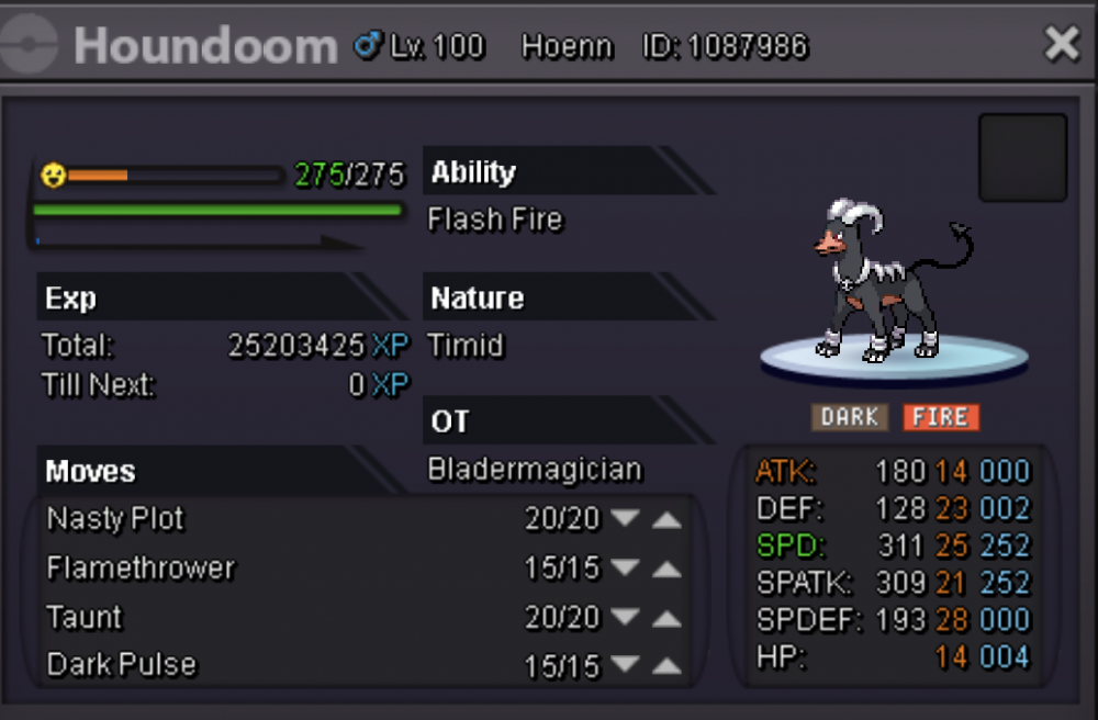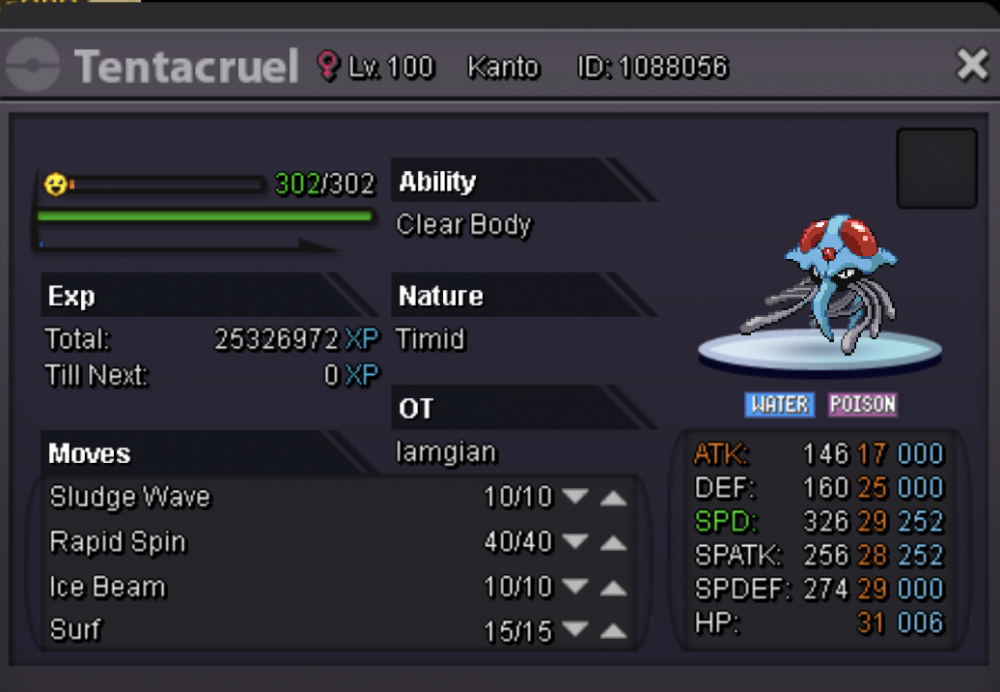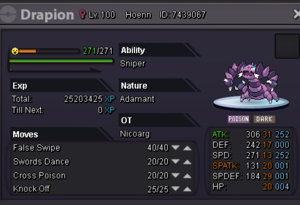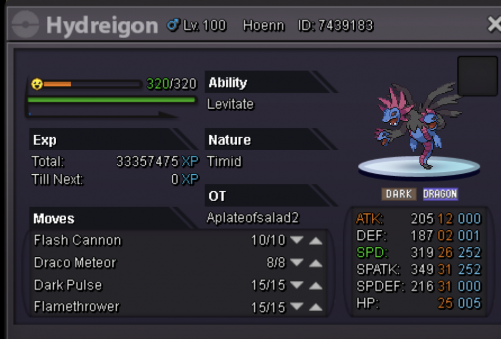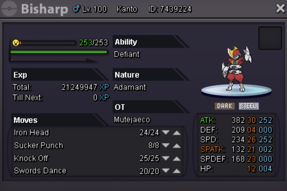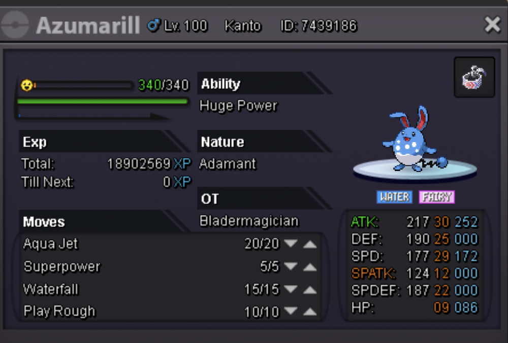 9. HEY CUTIE WELCOME TO MY SHOP [spoiler=My Discord Information]My Discord is djburke47#3882. [spoiler=Rules-READ FIRST] [spoiler=Rules-READ FIRST] [spoiler=Rules-READ FIRST] All prices are negotiable. All listings are in alphabetical order!!!!!!!!! I take reroll tickets as 550k and nature reroll as 275k. I take Coin capsules as 250k and BMS as 140k. I take RC as 5k and focus sash as 1k each. Please be respectful, I will trade for other pokes but I am not looking for them. I prefer money. I used to be staff and will make sure if you fake bid you will get banned. Stay Respectful. All the pokemon thumbnails have prices in their name. Hover mouse over the picture to see the price. I have the right to deny an offer, stop a trade or ban a player from shopping here with no notice. Trade is not locked in until it actually happens. If another user meets me before you, they get the pokemon. Customer must travel to me to pick up pokemon. No pokemon will come with item and they will be sold as is. In your offer please post a screen shot of what pokemon it is exactly or include distinct feature like 3 iv values I am in school, I will try my best to keep up but stay patient. POST BOTH HERE AND IN DISCORD IF YOU ARE GOING TO PM ME THERE. Shinies and event mons can be found here ----> Shinies and Event Mons CHAOS MEMBERS ONLY DISCOUNT ----> 100k off for every 600k spent in form of a credit (If you spend 600 you can get a free mon less than 100k, 1.2m get a free 200k mon, 1.8 mil 300k mon, 2.4m 400k mon) Enjoy! [spoiler=Pokemon For Sale][spoiler=A-C] [spoiler=D-F] [spoiler=G-I] [spoiler=J-L] [spoiler=M-O] [spoiler=P-S] [spoiler=T-V] [spoiler=W-Z] [spoiler=Sold Pokemon] [spoiler=My WIshlist] Charmander-Timid/Jolly Sableye-Impish/Careful HA Mudkip-Adament Medicham-Jolly Pure Power Ferrothorn-Sassy Excadrill-Jolly HA Garchomp-Jolly/Naive HA