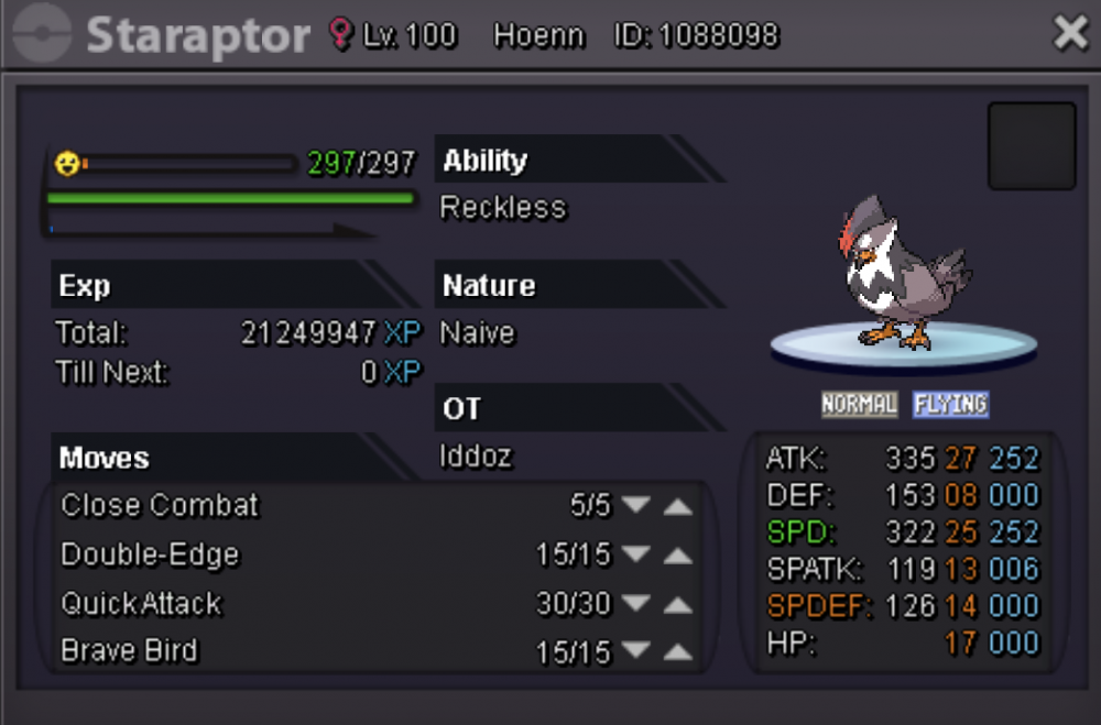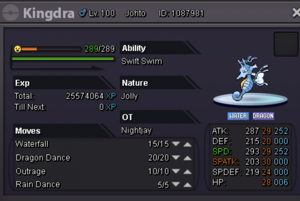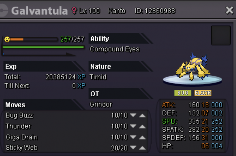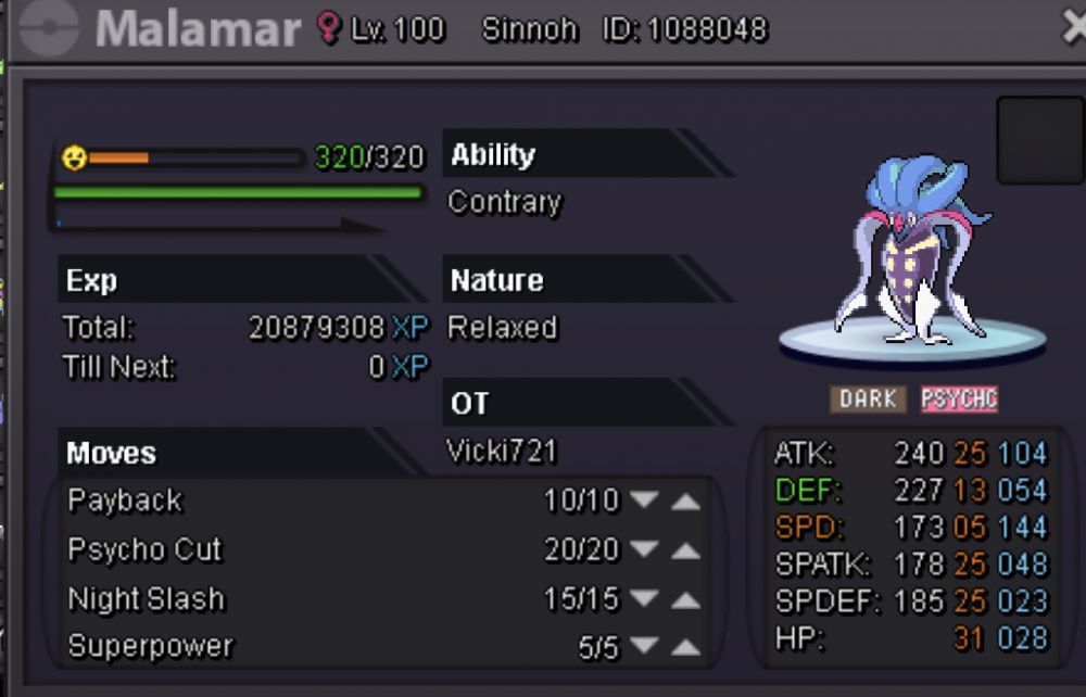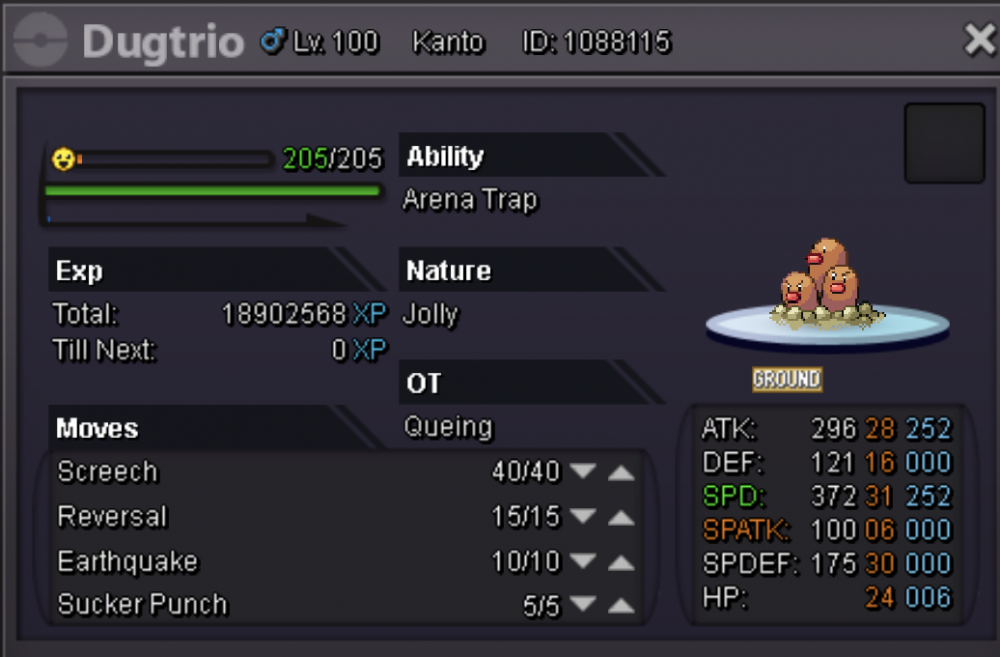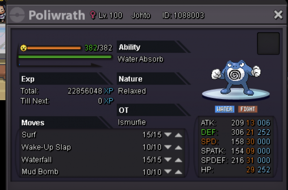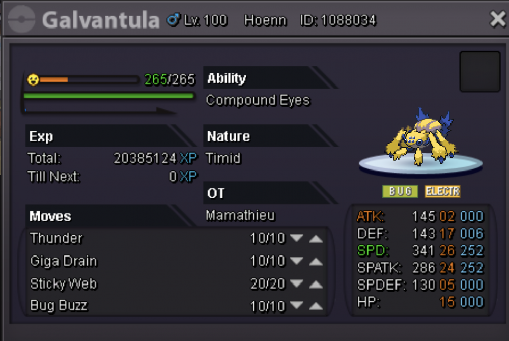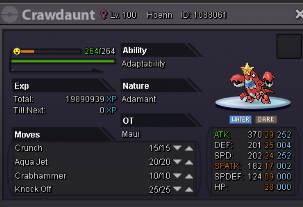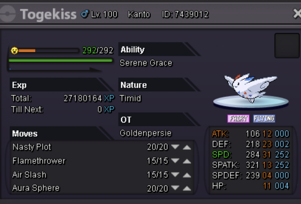 9. HEY CUTIE WELCOME TO MY SHOP [spoiler=My Discord Information]My Discord is djburke47#3882. [spoiler=Rules-READ FIRST] [spoiler=Rules-READ FIRST] [spoiler=Rules-READ FIRST] All prices are negotiable. All listings are in alphabetical order!!!!!!!!! I take reroll tickets as 550k and nature reroll as 275k. I take Coin capsules as 250k and BMS as 140k. I take RC as 5k and focus sash as 1k each. Please be respectful, I will trade for other pokes but I am not looking for them. I prefer money. I used to be staff and will make sure if you fake bid you will get banned. Stay Respectful. All the pokemon thumbnails have prices in their name. Hover mouse over the picture to see the price. I have the right to deny an offer, stop a trade or ban a player from shopping here with no notice. Trade is not locked in until it actually happens. If another user meets me before you, they get the pokemon. Customer must travel to me to pick up pokemon. No pokemon will come with item and they will be sold as is. In your offer please post a screen shot of what pokemon it is exactly or include distinct feature like 3 iv values I am in school, I will try my best to keep up but stay patient. POST BOTH HERE AND IN DISCORD IF YOU ARE GOING TO PM ME THERE. Shinies and event mons can be found here ----> Shinies and Event Mons CHAOS MEMBERS ONLY DISCOUNT ----> 100k off for every 600k spent in form of a credit (If you spend 600 you can get a free mon less than 100k, 1.2m get a free 200k mon, 1.8 mil 300k mon, 2.4m 400k mon) Enjoy! [spoiler=Pokemon For Sale][spoiler=A-C] [spoiler=D-F] [spoiler=G-I] [spoiler=J-L] [spoiler=M-O] [spoiler=P-S] [spoiler=T-V] [spoiler=W-Z] [spoiler=Sold Pokemon] [spoiler=My WIshlist] Charmander-Timid/Jolly Sableye-Impish/Careful HA Mudkip-Adament Medicham-Jolly Pure Power Ferrothorn-Sassy Excadrill-Jolly HA Garchomp-Jolly/Naive HA