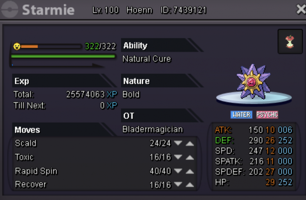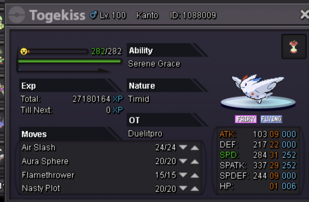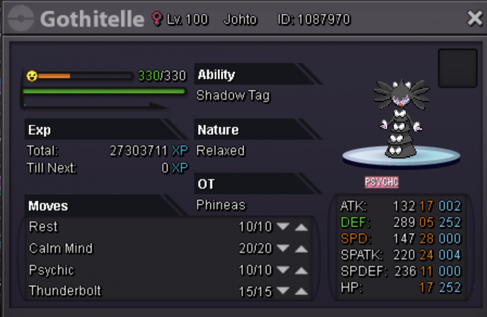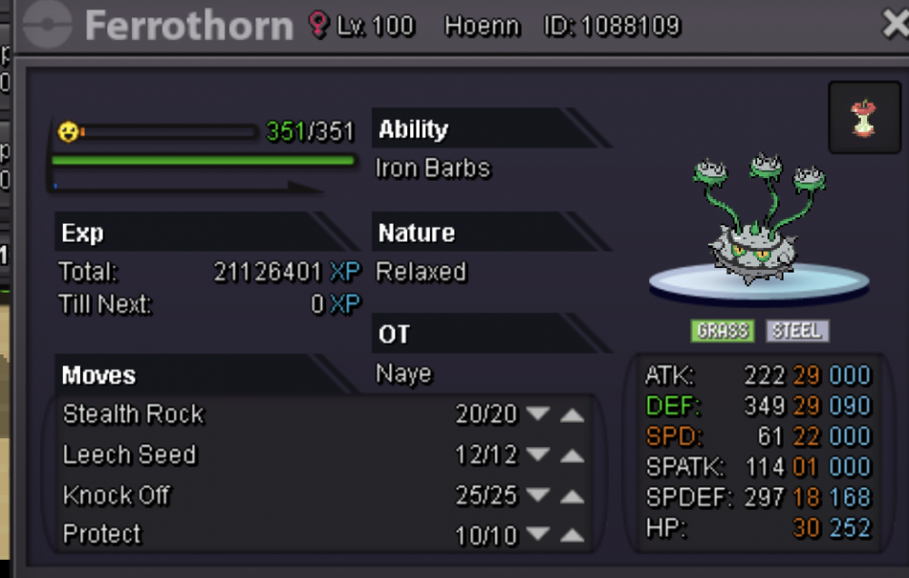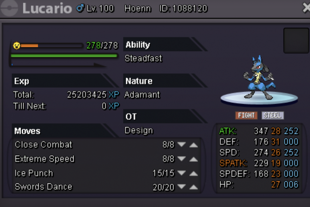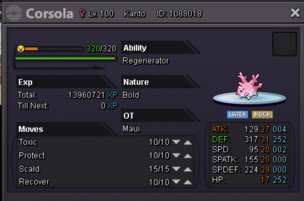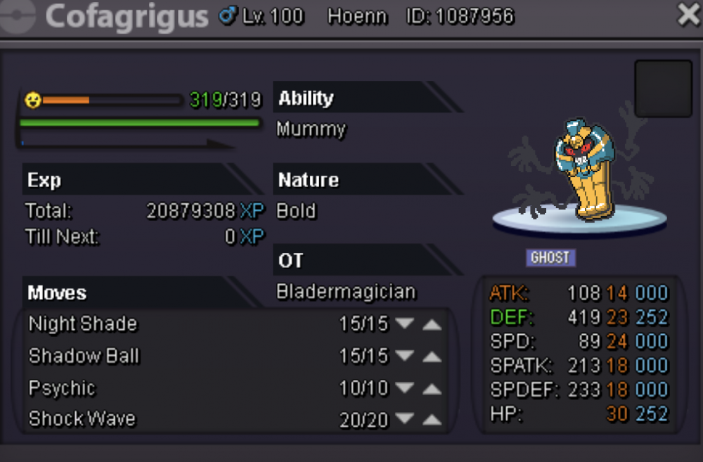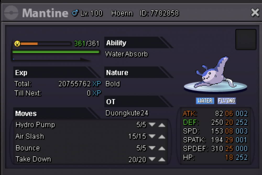 9. HEY CUTIE WELCOME TO MY SHOP [spoiler=My Discord Information]My Discord is djburke47#3882. [spoiler=Rules-READ FIRST] [spoiler=Rules-READ FIRST] [spoiler=Rules-READ FIRST] All prices are negotiable. All listings are in alphabetical order!!!!!!!!! I take reroll tickets as 550k and nature reroll as 275k. I take Coin capsules as 250k and BMS as 140k. I take RC as 5k and focus sash as 1k each. Please be respectful, I will trade for other pokes but I am not looking for them. I prefer money. I used to be staff and will make sure if you fake bid you will get banned. Stay Respectful. All the pokemon thumbnails have prices in their name. Hover mouse over the picture to see the price. I have the right to deny an offer, stop a trade or ban a player from shopping here with no notice. Trade is not locked in until it actually happens. If another user meets me before you, they get the pokemon. Customer must travel to me to pick up pokemon. No pokemon will come with item and they will be sold as is. In your offer please post a screen shot of what pokemon it is exactly or include distinct feature like 3 iv values I am in school, I will try my best to keep up but stay patient. POST BOTH HERE AND IN DISCORD IF YOU ARE GOING TO PM ME THERE. Shinies and event mons can be found here ----> Shinies and Event Mons CHAOS MEMBERS ONLY DISCOUNT ----> 100k off for every 600k spent in form of a credit (If you spend 600 you can get a free mon less than 100k, 1.2m get a free 200k mon, 1.8 mil 300k mon, 2.4m 400k mon) Enjoy! [spoiler=Pokemon For Sale][spoiler=A-C] [spoiler=D-F] [spoiler=G-I] [spoiler=J-L] [spoiler=M-O] [spoiler=P-S] [spoiler=T-V] [spoiler=W-Z] [spoiler=Sold Pokemon] [spoiler=My WIshlist] Charmander-Timid/Jolly Sableye-Impish/Careful HA Mudkip-Adament Medicham-Jolly Pure Power Ferrothorn-Sassy Excadrill-Jolly HA Garchomp-Jolly/Naive HA