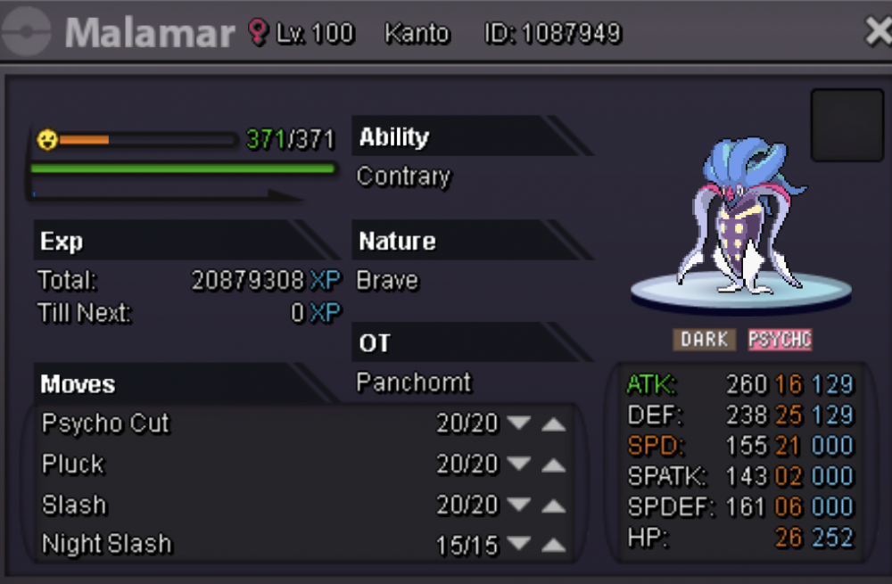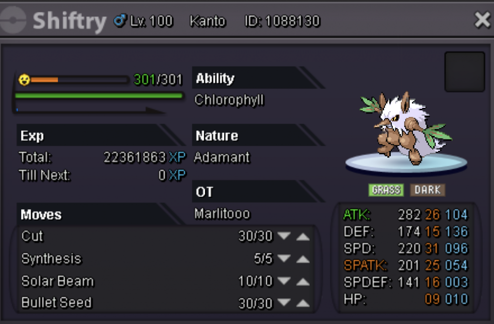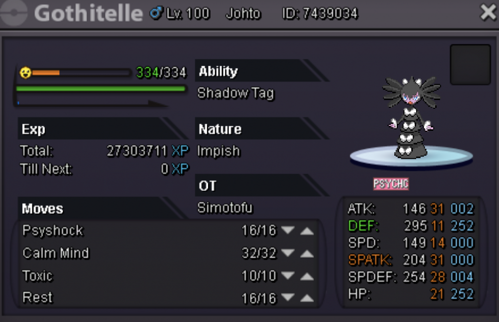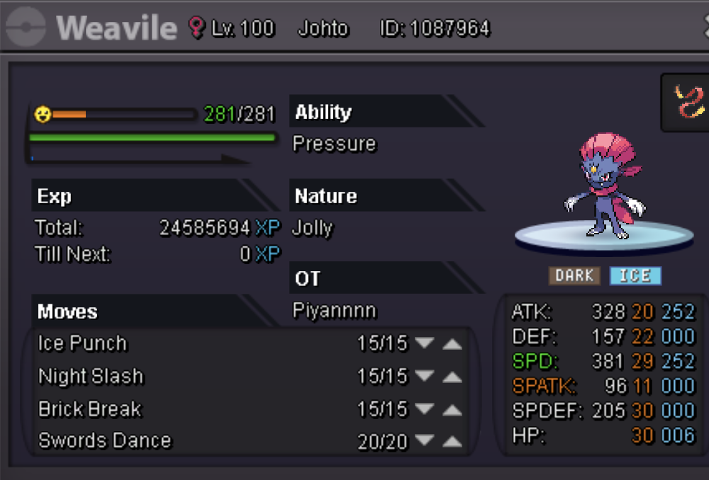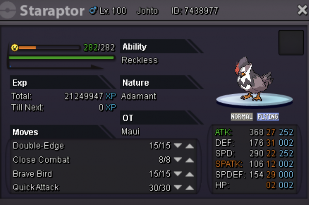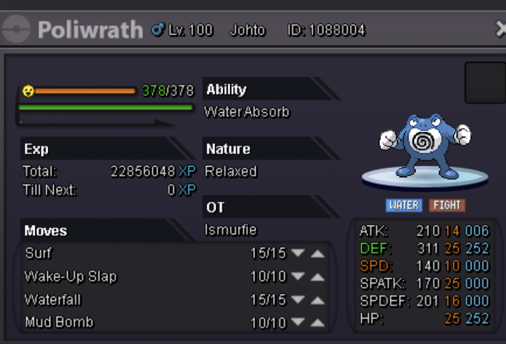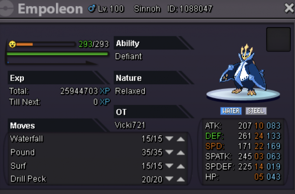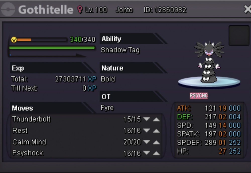 9. HEY CUTIE WELCOME TO MY SHOP [spoiler=My Discord Information]My Discord is djburke47#3882. [spoiler=Rules-READ FIRST] [spoiler=Rules-READ FIRST] [spoiler=Rules-READ FIRST] All prices are negotiable. All listings are in alphabetical order!!!!!!!!! I take reroll tickets as 550k and nature reroll as 275k. I take Coin capsules as 250k and BMS as 140k. I take RC as 5k and focus sash as 1k each. Please be respectful, I will trade for other pokes but I am not looking for them. I prefer money. I used to be staff and will make sure if you fake bid you will get banned. Stay Respectful. All the pokemon thumbnails have prices in their name. Hover mouse over the picture to see the price. I have the right to deny an offer, stop a trade or ban a player from shopping here with no notice. Trade is not locked in until it actually happens. If another user meets me before you, they get the pokemon. Customer must travel to me to pick up pokemon. No pokemon will come with item and they will be sold as is. In your offer please post a screen shot of what pokemon it is exactly or include distinct feature like 3 iv values I am in school, I will try my best to keep up but stay patient. POST BOTH HERE AND IN DISCORD IF YOU ARE GOING TO PM ME THERE. Shinies and event mons can be found here ----> Shinies and Event Mons CHAOS MEMBERS ONLY DISCOUNT ----> 100k off for every 600k spent in form of a credit (If you spend 600 you can get a free mon less than 100k, 1.2m get a free 200k mon, 1.8 mil 300k mon, 2.4m 400k mon) Enjoy! [spoiler=Pokemon For Sale][spoiler=A-C] [spoiler=D-F] [spoiler=G-I] [spoiler=J-L] [spoiler=M-O] [spoiler=P-S] [spoiler=T-V] [spoiler=W-Z] [spoiler=Sold Pokemon] [spoiler=My WIshlist] Charmander-Timid/Jolly Sableye-Impish/Careful HA Mudkip-Adament Medicham-Jolly Pure Power Ferrothorn-Sassy Excadrill-Jolly HA Garchomp-Jolly/Naive HA