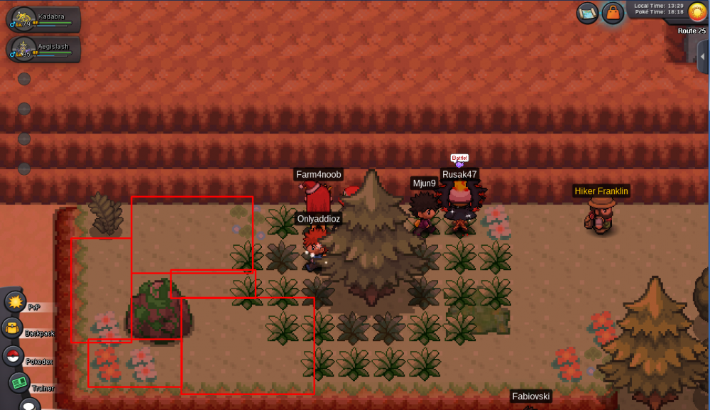 I would suggest to add more grass in this map (route 25) since it's a little painful to hunt in this small patch. Adding grass in those Red areas would really make it more healty.