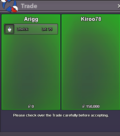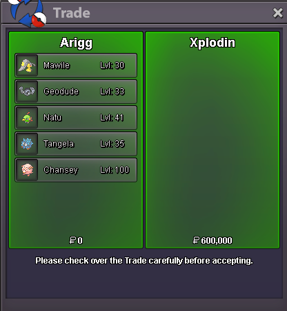 Start Offer: 400k End: 24 hours (after start price is met) No insta Minimum Bid: 50k Accepted Payments: Pokedollars. Reroll Ticket: 600k each. Nature Reroll: 300k each. Coin Capsule: 450k each.