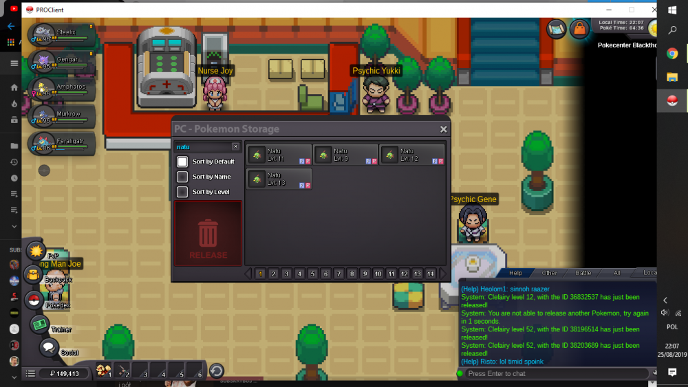 1. Hello! I've been playing some PRO. I managed to catch a Clefairy ( ID 38203689). She was 52 lvl as u can see. I picked up it from "PC - Pokemon Storage" as usable 6 pokemons and I started realeasing unwanted Clefairies. When i deleted last one the one from my top6 has disappeared. I am a little bit confused cause I had my wanted one Cleafairy in my top6. How is it possible. I would like to get her back if it's possible, cause she had BOLD nature which I was hardly looking for. Can you do it for me? As a proof I am attaching a screenshot. Thanks in advance for help. Love, Tom