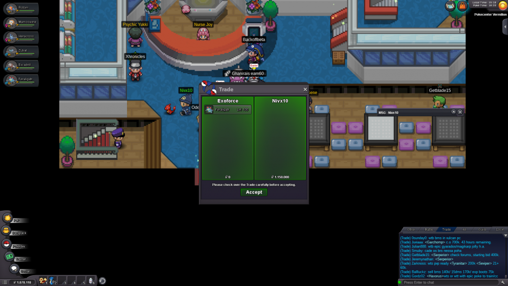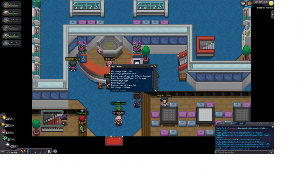 The minimum raise is 100k and I will accept Pokedollars, Coin Capsule =280k, nature reroll =300k and IV reroll =600k.