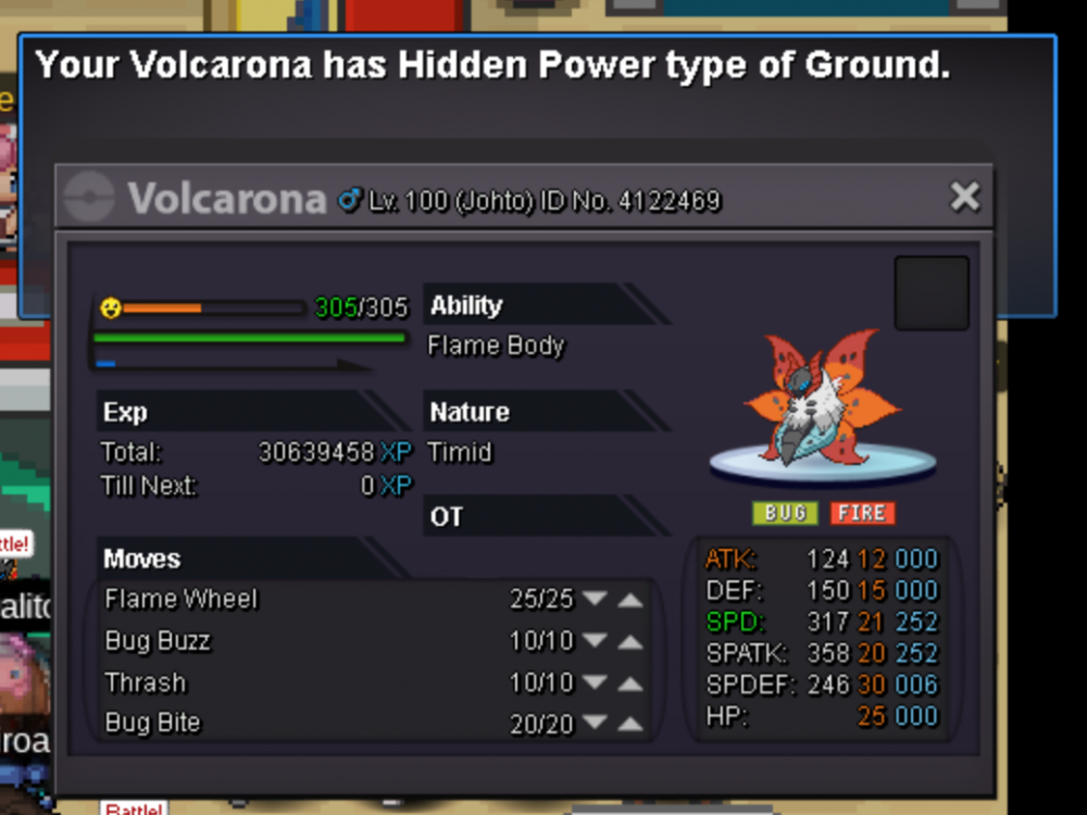 WELCOME EVERYONE! I would like to sell my epic pokemon: Nature: Timid Hidden Power: Ground Ev trained: 252SPD 252SPATK Region: Johto RULES OF AUCTION: 1. Initial offer is set at 600k. 2. Minimum bid = 300k. 3. Insta added at 24 hrs count-down 4. Auction timer will be set at 72hours from the first offer. 5. I reserve the right to cancel the auction if i don't find any worthy bids. 6. There will be a shout out (in-game) on the end of each day. 7. You can send me your offers in-game (ign- ayushk20), here below in the thread or DM me on my Discord - Ayush#6777 8. All offers will be posted here to avoid doubts of fake offers. SOLD TO SHINYCELEBI FOR INSTA PRICE OF 3.5MILLION INSTA : 3.5MILLION Time left: