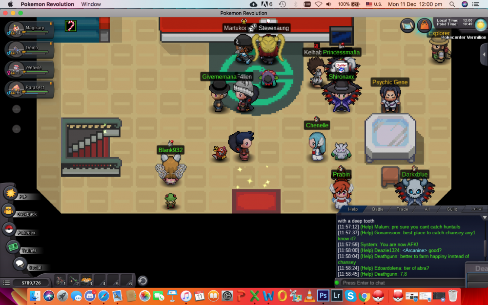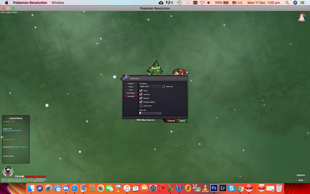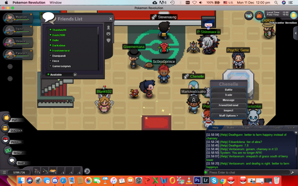 hey, so fyi, I use a mac and have updated to the latest software and everything. My IGN is - ayushk20 and i play in the Blue Server. The Situation: Never had a game bug before the xmas update. Since the xmas update, there were times when the game would get stuck occasionally and the same task, happening in that second repeat in a loop, ( for example: the letter of a word being typed while in a battle, like the "G" of the word "Golbat" in the sentence "Golbat has fainted" would repeat and i would have to restart the game) The Current Problem: Now, since the past 2 or 3 days, i am getting a series of errors and yes i have reinstalled the game, tried in window and full screen mode, also checked in all resolutions. 1. When i open the game, the GUI reset to 0 every time. (I have to open the options on the login screen to check the game zoom button and fix the GUI every time.) 2. I don't get the options i used to get on right-clicking on the names in my friend's list. 3. When i right-click someone on my screen, for example in the same pokemon centre, i either don't get the option list and if i do, its at the far right than where the person is. 4. When i right click on someone in chat, for example, someone in trade chat who wants to buy something, the list pops up, but is at the very right end corner of the screen, so i cant even choose an option. Proof attaching: (can get more, if needed) I am adding the picture of the GUI going to 0 and the picture of the 3rd and 4th point above, Please help me with the same, its really bugging me, never thought of having such issues. Due to this i have to type the person's name every single time...... JUST NOTICED ANOTHER THING IN THIS BUG: The bug is more linked to where i click on the screen... Imagine the screen split equally in 4 parts, if my friends' list is in the top left, the right click option list goes far left (just slightly visible) if i put it on the top right and the right click option list goes far right (still just slightly visible)and so on for the bottom left and right, but for the bottom ones it also goes down, so down left/right. Thus its become very hard to navigate through the game screen, with the GUI resets each time and the clicks going all "weird". Please help out... Thanks in advance, Ayushk20