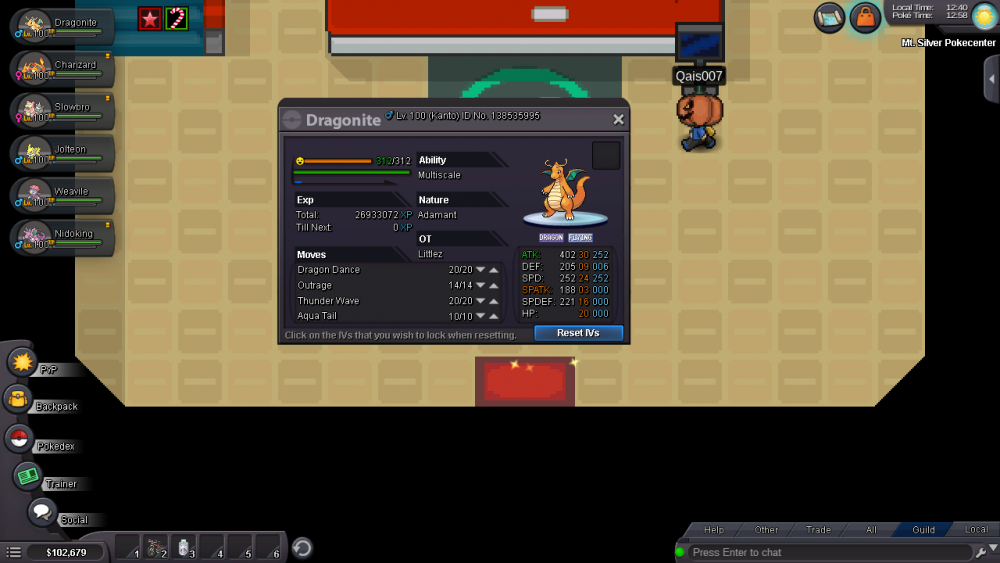 Want to sell Dragonite h.a. ev trained 252 atk 252 spe and 6 def.