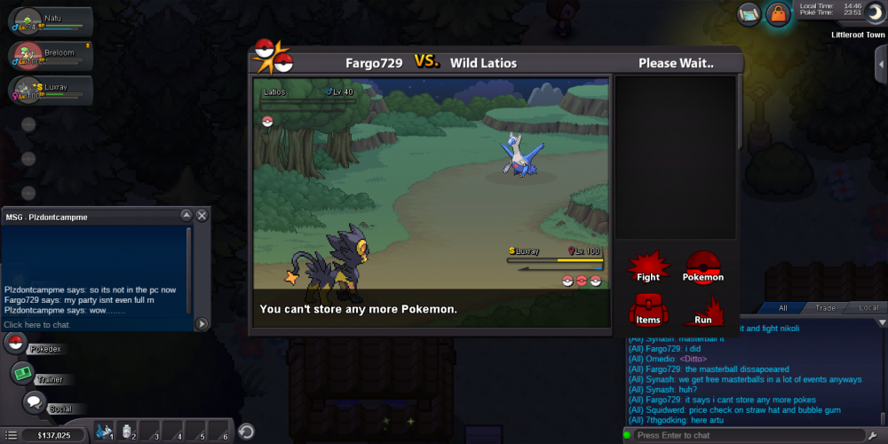 I was trying to catch latios, but i got a message saying that I couldnt store any more pokemon and to release some at the nearest pc. However, i still had 3 slots in my party open, and my pc is not full. I also used mymasterball, which then dissappeared after failing to catch latios.