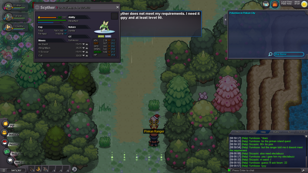 1. Failed to donate my scyther to the ranger. He says that my scyther doen't meet his requirement even though my scyther is 92 level and 100% happiness. Do fix this or tell me if I have to prepare an exact 90level scyther because the script only wrote 'at least 90 level'.Here is a screenshot. thank you.