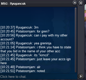 s.o: 2m min bid: 200k no insta. ends 48h after the first bid. accepting pokedollar, cc@500k, rr@700k. GL