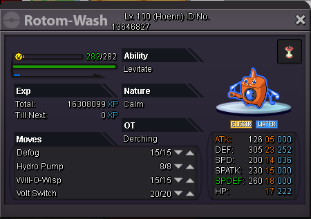 Skarmory 200K SOLD use toxic -> 3 times spikes -> stealth rock -> roost if necessary to the first boss poke Clefable 200K use calm mind+cosmic power to increase def and sdef, recover hp by soft-boiled, moonblast for atk Forretress 200K SOLD not easy to die, use toxic -> then put all spikes Rotom Wash 450K some stupid ground type boss poke will keep using earthquake no effect on levitate Wash. Use Hydro-Pump to KO them Klefki 300K Prankster increases the priority of status moves by one. Use light screen to increase all pokes' sdef or thunder wave to paralyzes the target. Also can be used in pvp battle Whimsicott 250K Prankster increases the priority of status moves by one. Stun spore is useful. --------------------------------------------------------------------------------------------------------- Gyarados 200K 31speed+31atk Amoonguss 400K trick room team - good member slow sweeper very toxic guy Florges 180K not a really good IVs but still very tanky petal dance and calm mind boost up -> kill the whole team Scrafty 800K Dragon Dance and Moxie and Ada pvp god full coverage movesets Staraptor 850K IVs 26+ pvp god jolly with H.A full coverage movesets Phanpy 200K 26def 31sdef 31Hp Drilbur 130K -1 EV trained Drilbur 130K -2 EV trained