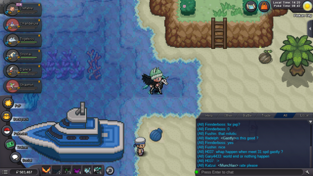 1. Special pokeballs aren't taken during the quest, only normal, great, ultra and master balls. [spoiler=Image] 2. After defeating giovanni in the quest officer jenny "brings you to the boat", ending in a strange position. [spoiler=Image] (3. The police and team rocket members are seeming to fight in the water area of pinkan, all near the entrances to surfable places, these 2 aren't blocking the way though. (Also to add, there is a surfable pond along the intended path in the quest.)[spoiler=Image] )