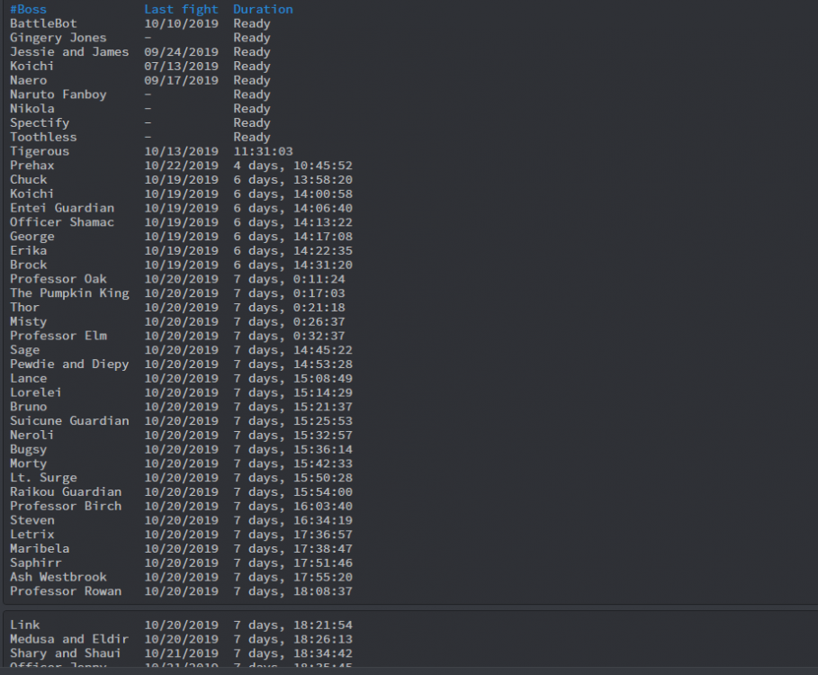 Have too many bosses in list typed 2 times and says that are ready to battle and they are not can you pls fix this.