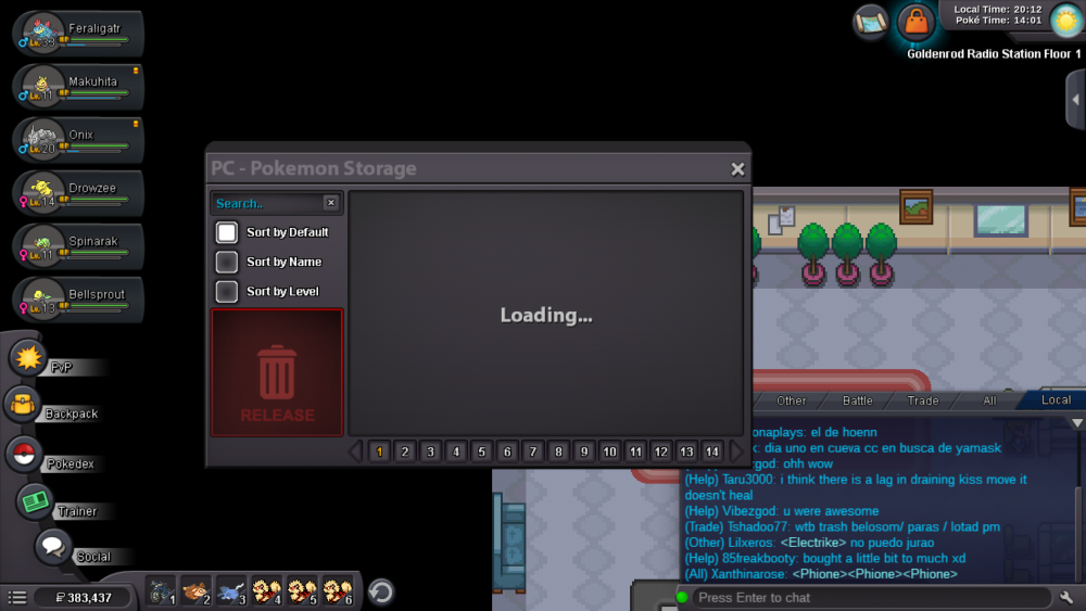 I found this PC Pokemon Storage Isn't working, it keep loading without displaying the pokemons inside it and sometimes it doesn't allow me to close its window which lead me to close game and enter again i tried it many times today well till now other PC storages are working normally only that one at Goldenrod radio station floor 1 isn't working.