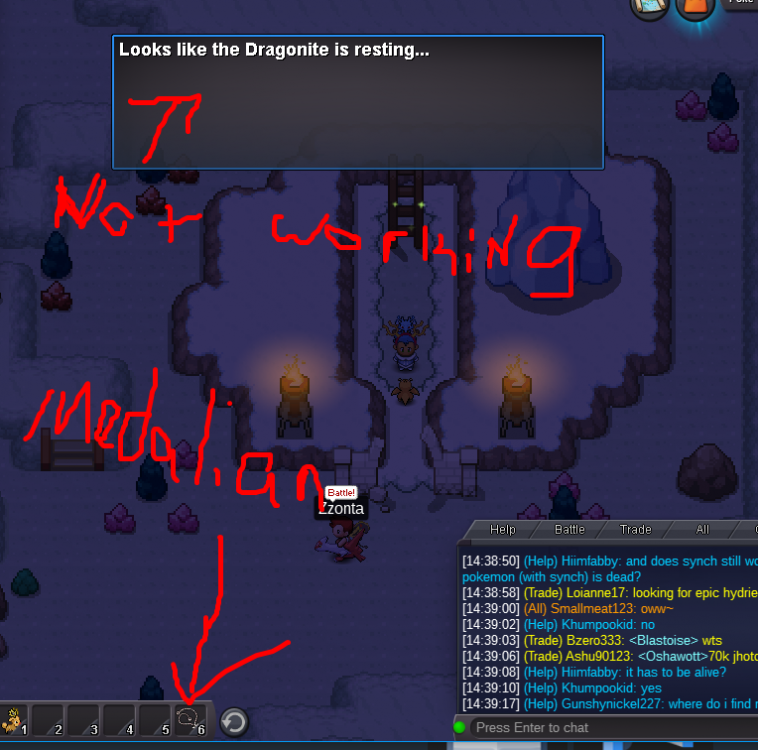 i have the dragon medalion and i acedentaly clicked the dragonite so i relogged so i wouldnt battle it because i wasnt rdy and when i logged back in it said dragonite was resting