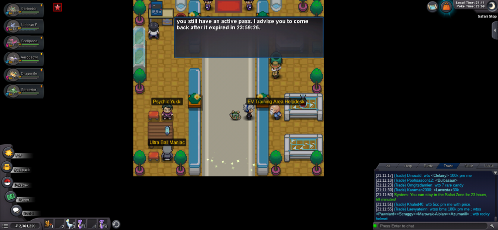 Hello i talked to the man that i usually talk to get in safari for 2k he offers me an option to buy pass for 50k i did it but every time i talk to him he dont let me have an option to enty Safari zone for 2k each instead he is still trying sell me a safari pass and if i press yes he is showing thst message so can y tell me how j supposed to get in ev zone?