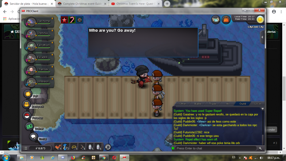 7. Hola me dirijo con un cordial saludo de navidad personal de pro es para reportar un problema de bug q tengo al iniciar la primera quest de navidad 3 hombres rojos no se van...