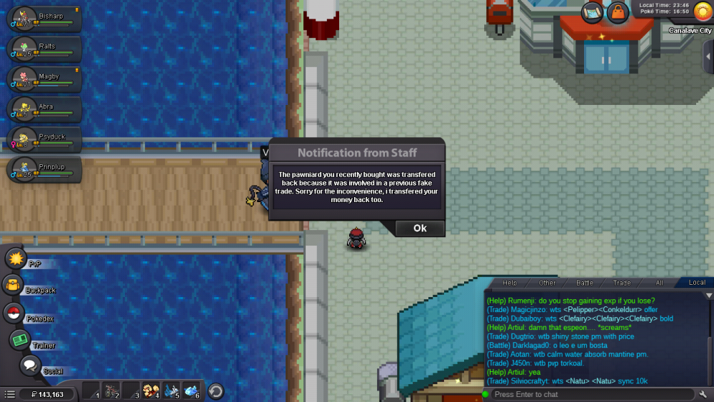 Help me!a guy needed a pkmn to trade for evolve which was a hoenn pkmn but I'm a johto champ.he didn't told me and I didn't know that also. and now I can't give him back.the trading also didn't warn use.he really needs that pkmn,and I'm can't cuz I'm a johto champ.he said,if I didn't give him,he will report me :( help me please