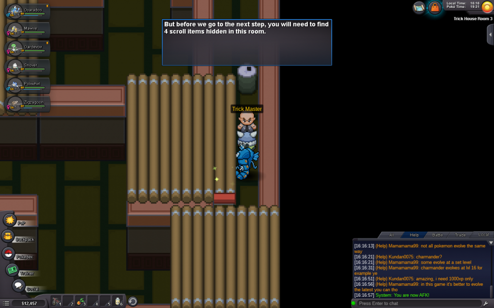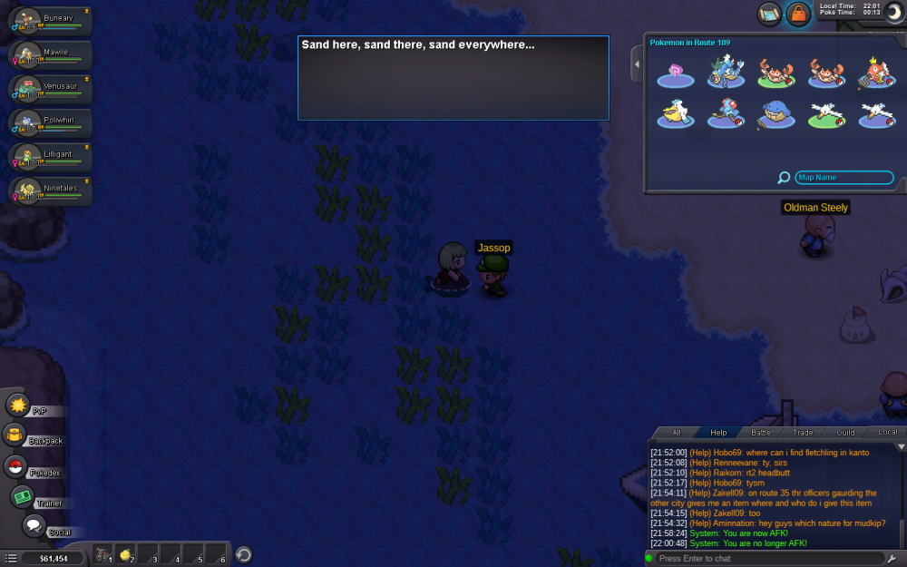 Hello it seems that logging in to yellow server and moving to other parts of the map stops the client for me. Whenever I try logging in it stops then when I get past by chance when i try entering another map it stops with the loading bar full. There is also this instance where I got logged in and my pokemon team wasn't there not a single one and I can use the chat normally but I'm stuck and cannot move. :Shocked: :confused: :Frown: