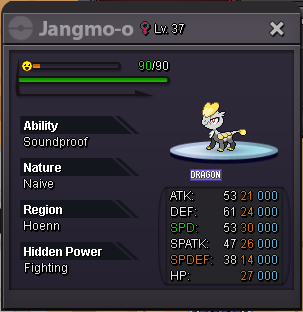 The jangmo-o auction ends after 24 hours, when the first bid is confirmed( UTC +7) Auction Details: Start Price: 1m C.O : 1m End Point: 24 hours (after start price is met) Insta Price: 7m Minimum Raise: 200k Accepted Payments: Pokedollars, Coin Capsules (x1 Coin Capsule = 470k), IV Reroll Tickets (x1 IV Reroll Ticket = 600k), nature Reroll = 300k Important Reminders: This is a Gold Server auction. If bidding from an alternative server, state that you will transfer upon winning. If you intend to purchase with an alt account, specify the account alongside your bid. If a bid is received in the final 15 minutes of the auction, the end point will be delayed by 15 minutes from that bid, and will be delayed by 15 minutes for each new bid thereafter, until the current offer has been held for a full 15 minutes.