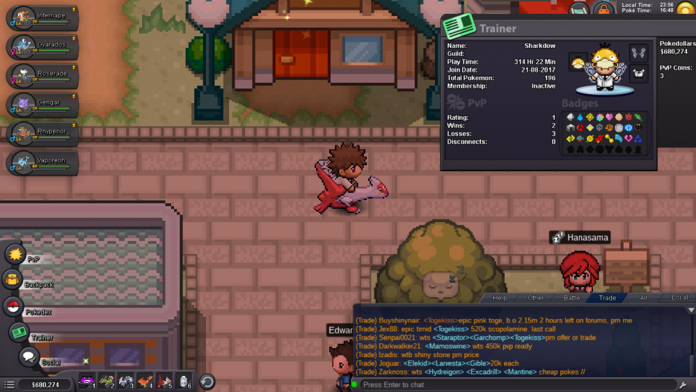 Where are you from?:Spain How old are you?:18 How much playtime do you have on PRO (including alternate accounts if any)?:more than 500 hours Has the game improved since you first joined? If yes, how?:Yes,new updates with new places came,new event pokes and more stabilty of the server:D Is there a staff member or player who you feel is underrated?:No,all do great things If you could change one thing about PRO, what would it be (no restrictions, be creative)?: Give more chances of play team,id love to play something like dungeons or something but the point is that play with teammates in some way:),add moves animations and alola pokes:D