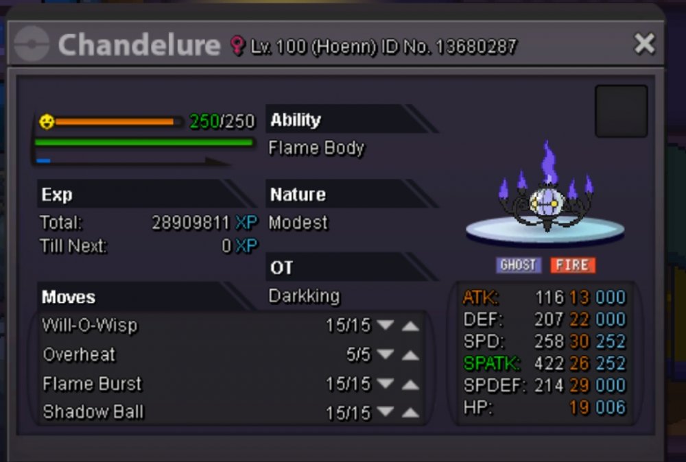 Hello, Today I am Selling my Modest Chandelure. Rules of the auction: The auction will end a week after me posting this Fake offer/troll will be reported I will accept 400k worth of cc Insta = 400k Present bid = No one yet