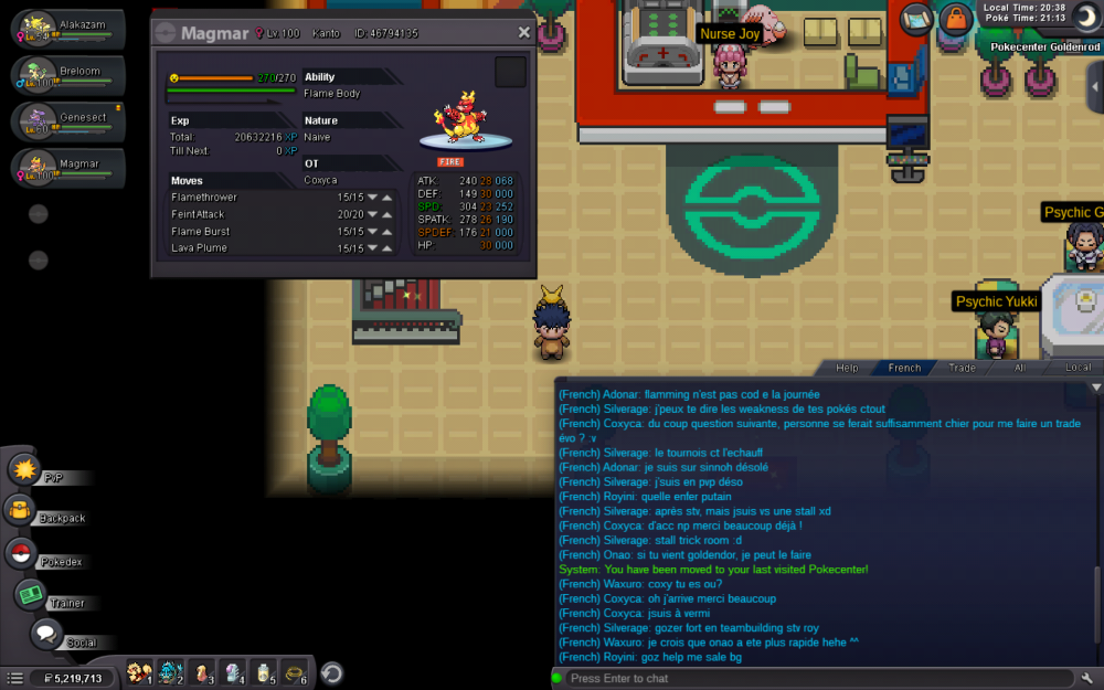 Hi, I traded a Magmar for evo to Onao on Silver server. We forgot about region lock and now he can't give it back to me. I didn't record the trade but he can confirm. I do have a screenshot of the Pokémon info + the trade agreement in a global chat (in French though) if it can be of any help. Chat translation: Coxyca: anyone bored enough to help me do an evo trade? Onao: if you come to Goldenrod I can do it Coxyca: on my way thank you Sorry and thank you :'( Edit - Thank you very much <3