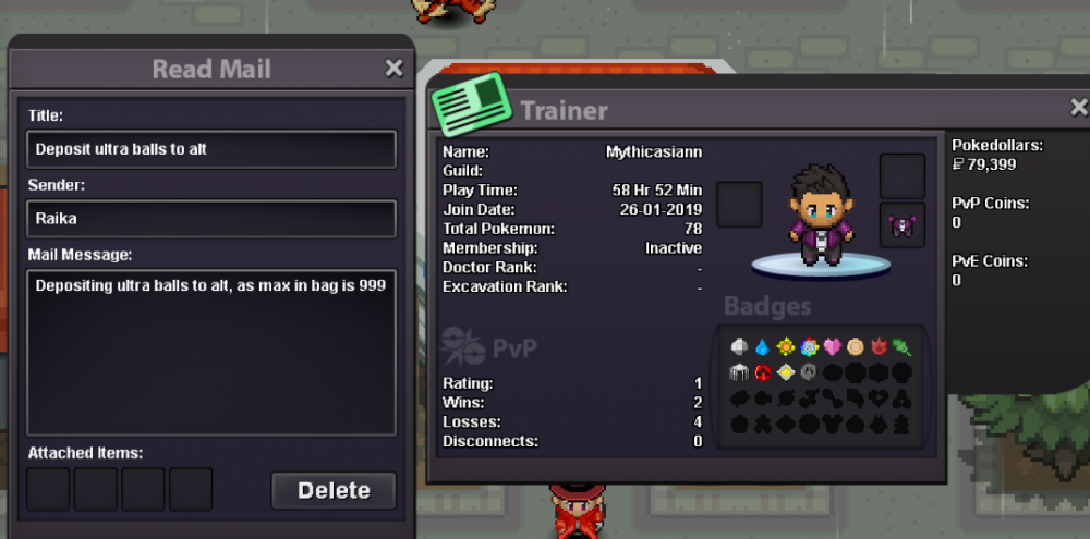 I went to hunt for some clefairy today, and when i found one i noticed i didn't have any ultraballs or pokeballs left. I haven't used any of them, and i am definitely certain i had 300+ ultraballs. Before this happened, i had bought a ton of ultra balls for an event i was hosting in my guild, and as 999 is the maximum number of any item you can have, i mailed a couple hundred to my baby account, IGN - Mythicasiann. Once the event was over, i transferred everything over to my main account (Raika) and had about 350 ultraballs left. Now they're completely gone.