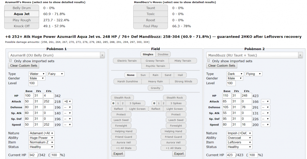 Introduction: Hey guys, my name is McSchitter of Scarlet and today I wanted to go over how to build a team in PRO. There is no one correct answer just to start off, but I think a lot of players in PRO would definitely do well to build some good team building habits as a good player may be able to win with bad teams. However, a well made team even in the hands of an inexperienced player can still easily have a positive win rate in PRO. This guide takes a different approach to guides made by Idkup, but can go very well hand in hand for the team building experience and highly recommend people use both resources as he did an excellent job and I will use a lot of jargon that he mentions in his guides so have your "ctrl+f" feature ready if you are are not the most experienced with Pokemon. If you are curious if I have any credibility in pro PvP, I may not have finished on the ladder yet, but I am a consistent 200+ rating player and if I was not so lazy would aspire to attempt to do better by PvP'ing more. Every season I average around mid 60's to 70% win rate which is the perfect amount any player needs to climb even to the ladder, but you may have to play more than others to reach that goal with a lower win rate than your average ladder player. My main experience involves "Pokemon Showdown" which is the premier style for Pokemon battling past VGC formats. By the way, this strategy for the most part works for Showdown too as this process was built from Showdown team making for me. NOTE: This guide mainly focuses and exemplifies building "Balanced" teams as nobody likes stall users and without Volt Switch or U-Turn in the game, I find Hyper Offense to be very lack luster as it can be very easy to lose Tempo to tanky opponents if they have switches available and you do not. This is the best style for beginners as the learning curve does not add more concepts than needed to learn. IMPORTANT: Any text in white throughout the guide is meant for the inexperienced! Otherwise if you have a core understanding of the basics, I would recommend you skip over it as there is a lot and even that barely scratches the surface of what it explains regarding Pokemon. The Steps I follow to build PvP Teams: Choose your main "Win Condition" Do you have a Core that is vital to your win condition Create a checklist that the team needs to work properly Check type weaknesses Double down on your checklist or create surprises if you still do not have 6 Pokemon Take notes when using your team for the first time Expect to fail, not every team can be A+ tier 1) Choose your main "Win Condition" [spoiler=1]Your win condition is vital and is the heart of the team. Pokemon is very complicated and scenarios change all the time where you have to adapt, but what you choose to be your "main" win condition means that although your team can win in other ways, this is the go to strategy you should be playing to for success. I tend to choose my win conditions when I am thinking of cool or practical tactics that work in Showdown. Some of the strongest win conditions are Pokemon that: Excel at zero counter play Abuse the majority of the meta Counter common team answers with little to no support [spoiler=Bullet Point Analysis]A Pokemon that has zero counter play is a Pokemon that cannot be "checked" or "answered" by any other Pokemon. Obviously no Pokemon like this exists but there are Pokemon that get as close to the definition as possible. In Pokemon Showdown, Pokemon have a tier listing for which they comply to be playable. The top of these tiers is known as "Ubers" which include famous powerful names like Mewtwo and Arceus. After that comes Overused (skip borderline tiers since it is not a PRO discussion), Underused, etc and these exist because not all Pokemon are equal as the difference between Mewtwo and Delibird I feel should be obvious. In PRO we do not have tiers past a ranking of the best. Unless banned, all PRO Pokemon play on the same playing field making this concept more important than ever in my opinion when choosing your win condition. I think this idea is where most of your "Ban 'Insert Good Pokemon Here'" arguments come from because a lot of people often run awful teams that have zero counter play for strong abusive Pokemon like Azumarill or Eviolite Chansey. Chansey has counter play in the form of knock-off, taunt trapping, etc. Azumarill has plenty of less specific ones as well but can be tricky since it runs more than one set and one set can do things better or worse than the other. PRO is not going to ban a Pokemon because of this unless the counter play style needed to beat the Pokemon is absurd like Speed Boost Blaziken who destroys a majority of the meta as it gets a free speed boost with protect and unless the it is faced by a good prankster answer, setup with priority, or a couple other fringe cases, most Pokemon will completely struggle to help answer the threat before it becomes to much to handle with its speed and simply limits team building for too much. PRO's meta, like any other game, changes even if infrequently. Pokemon rise and fall by this and through the revolving door new Pokemon who are abusive to the meta will appear (looking at you Conkeldurr). These Pokemon often are your culprits of having little counter play and limit team building because of their prevalence. For instance, Chansey use to be top tier in PRO but because drain punch was fixed and gave Conkeldurr resilience despite being burned with Guts, it basically has wiped out the majority of Chansey users as the Pokemon lacks knock-off to abuse one of the few counter play options to beat Conkeldurr and just offers a free switch in. A Pokemon that can win a game with just a little bit of support would obviously make more sense to use than a Pokemon that needs a ton of support to find consistent wins. A very easy way to look at this is a "Screens Belly Drum Azu" core versus a "Hazard Phasing" core. The idea behind Azumarill simply requires that