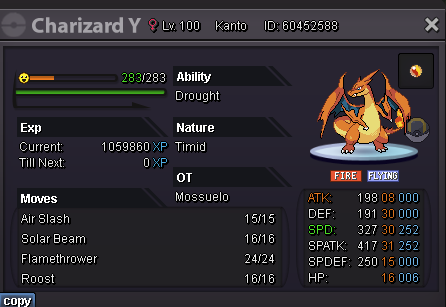 Incandescent Posted January 26, 2024 Share Posted January 26, 2024 Hello @Viscabarcaa According to General Trade Rules, your Charizard does not meet the requirements to be classified as 30+ due to SPDEF (15) and HP (16) IVS being too low. I have removed the "3x30+" part from your thread's title. Quote 1. When advertising, be clear and accurate about what you are buying or selling. - When stating a Pokemon is IV+ (25+, 26+, etc), all stats must be equal to, or above the advertised numbers. › Exception: Decreased ATK, SPATK or SPD stats. › e.g. A Timid Pokemon may be advertised as 25+, if all stats except Attack are equal to, or above 25. Kind regards Link to comment https://pokemonrevolution.net/forum/topic/232287-wts-25-lucario-adamant-charizard-3031/#findComment-1392722 Share on other sites More sharing options...