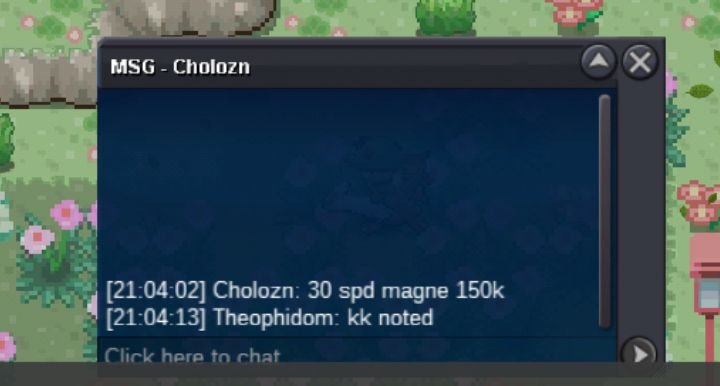 Theophidom Posted February 16, 2024 Share Posted February 16, 2024 (edited) Auction: Semi Epic Hp Fire Magnetmite Start Bid for each: 50k Min Bid: 10k No Insta Ends in 3 days after starting offer is met CC: 400k Nat reroll: 250k Iv reroll: 650k Rc: 7k Offer in forum or Ingame: Theophidom C.O=1st Magnemite: 150k by Darklight0 2nd Magnemite: 400k by Dayumson 1st Magnemite 2nd Magnemite Edited February 19, 2024 by Theophidom Link to comment https://pokemonrevolution.net/forum/topic/233253-auction-ended/ Share on other sites More sharing options...