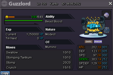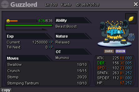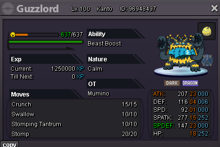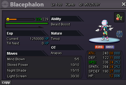 Sparkypoo Posted December 3, 2024 Share Posted December 3, 2024 (edited) Welcome to this huge Ultra Beast Auction! Make sure to read the rules down below if you're interested :3 Good luck to everyone! Min. bid raise on any Pokemon in this auction: 50k! Blacephalons: Blace 1 C.O. 300k by Elior623____________________________________________________________________________Blace 2 S.O.100k Blace 3 S.O. 100k. ____________________________________________________________________________Blace 4 S.O.100k Blace 5 S.O. 100k. ____________________________________________________________________________Blace 6 S.O.100k Blace 7 S.O. 100k. ____________________________________________________________________________Blace 8 C.O. 450k by Barze97 Blace 9 S.O. 100k. ____________________________________________________________________________Blace 10 C.O.100k by Medu5a Blace 11 C.O. 250k by Barze97 ___________________________________________________________Blace 12 C.O 300k by Barze97 Guzzlords: Guzz 1 C.O. 100k. by Noctawolf ____________________________________________________________________________Guzz 2 S.O.100k Guzz 3 S.O. 100k. ____________________________________________________________________________Guzz 4 C.O.100k by Medu5a Guzz 5 S.O. 100k. ____________________________________________________________________________Guzz 6 C.O.250k by Blackmoonn Guzz 7 C.O. 150k. by Magicarpediem ____________________________________________________________________________Guzz 8 C.O.100k by Princesscadance Guz 9 S.O. 100k Rules: Before you proceed to partake in this Auction, make sure to familiarize yourself with the Auction rules to avoid any inconveniences! https://pokemonrevolution.net/forum/topic/119709-forums-and-in-game-auction-rules/ All Pokemon are on my other account and therefore all trades will be done with that account once the Auction has ended: Insta for all Pokemon: 18m No individual insta! This Auction is not a bundle! All bids are for individual Pokemon, unless stated otherwise by the bidder. meaning, you can bid on multiple Pokemon at once. Auction times: Auction Starts: After first bid (any Pokemon) Auction Ends: Saturday 14th of December at 22:00 GMT Bidding: All Pokemon will have a Starting Offer (S.O.) of 100k. Whenever someone Offers on a Pokemon, the new Current Offer (C.O.) will be placed above the corresponding Pokemon. The minimum bid raise for all Pokemon is 50k. As per Auction rules I will only accept offers placed in this thread or offers received in-game. (offers received in-game will be posted in this thread with a screenshot of said offer and player!) When bidding, please state what Pokemon you're bidding on! Example: Blace 1 200k and Guzz 3 200k If a bid is received in the final 15 minutes of the auction on any Pokemon, the end point will be delayed by 15 minutes from that bid, and will be delayed by 15 minutes for each new bid thereafter, until all current offers have been held for a full 15 minutes. This goes for the entire Auction. Accepted payments: Pokedollars Reroll Ticket: 500k each. Coin Capsule: 400k each. 15 days MS: 400k each. Black Medallion: 200k each. Rare Candy: 5k each. For questions, you can contact me in-game: Sparkypoo or on discord: Sparkypooper Edited December 14, 2024 by Sparkypoo Link to comment https://pokemonrevolution.net/forum/topic/247494-huge-auction-of-20-rare-ultra-beasts-blacephalons-and-guzzlords/ Share on other sites More sharing options...